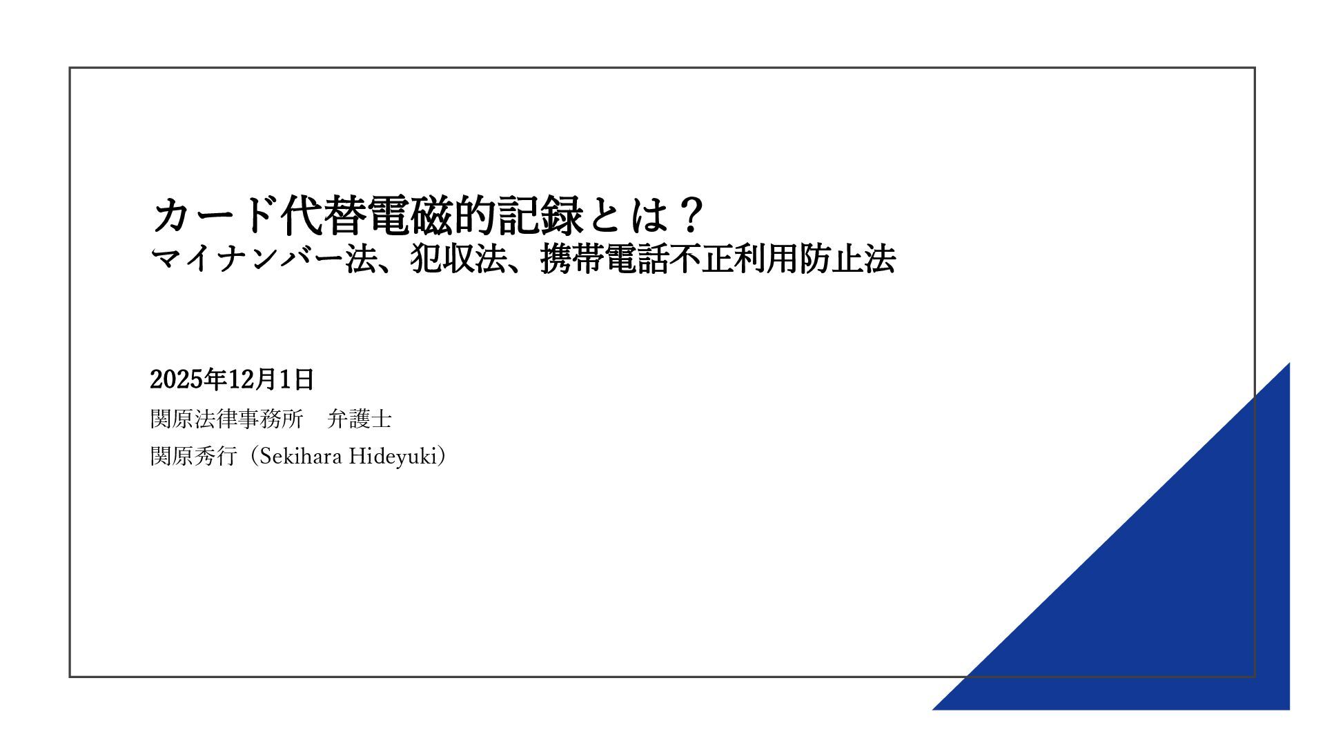 カード代替電磁的記録とは? マイナンバー法、犯収法、携帯電話不正利用防止法 2025年12月1日 関原法律事務所 弁護士 関原秀行(Sekihara Hideyuki)