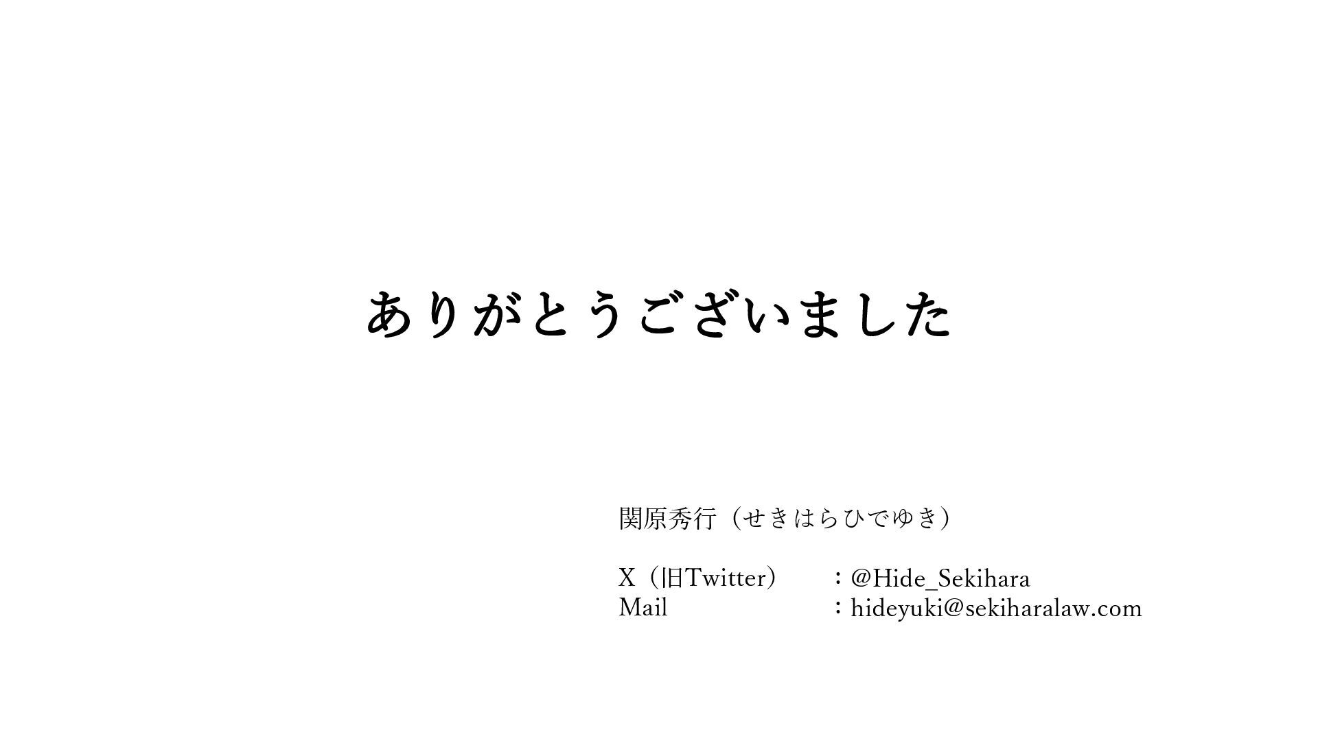 ありがとうございました 関原秀行(せきはらひでゆき) X(旧Twitter) Mail :@Hide_Sekihara :