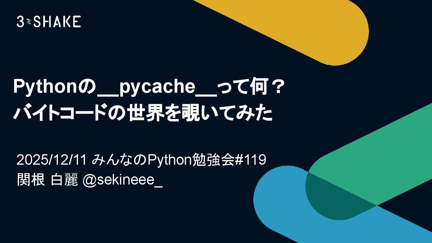 Pythonの__pycache__って何? バイトコードの世界を覗いてみた 2025/12/11 みんなのPython勉強会#119 関根 白麗 @sekineee_
