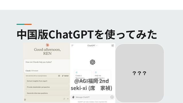 ??? 中国版ChatGPTを使ってみた @AGI福岡 2nd seki-xi (席 家禎)
