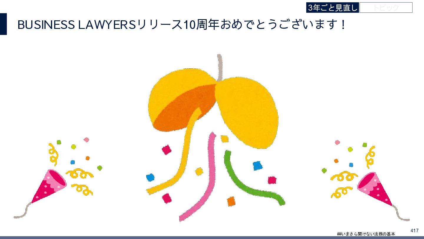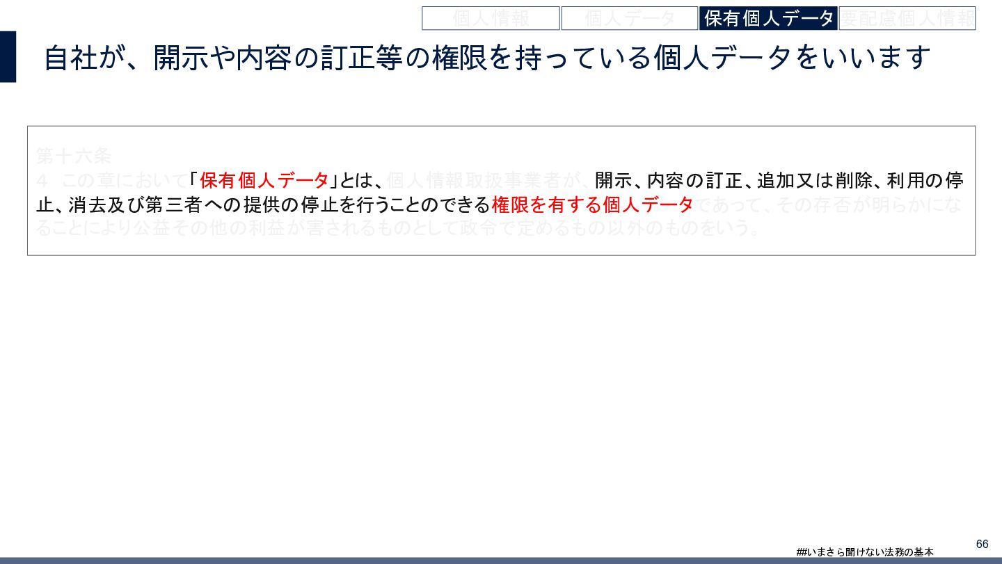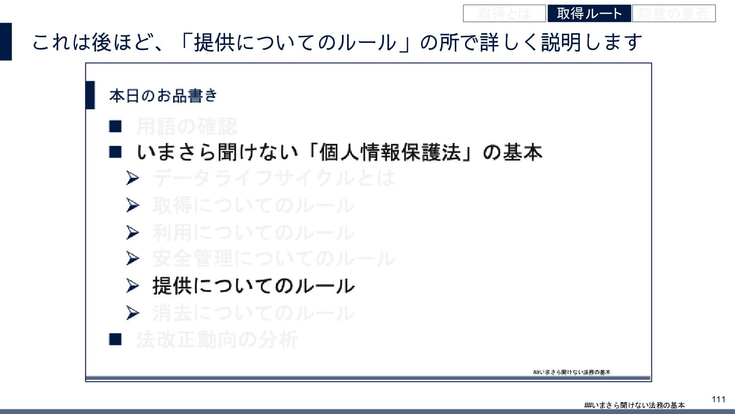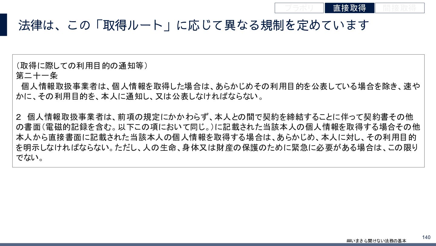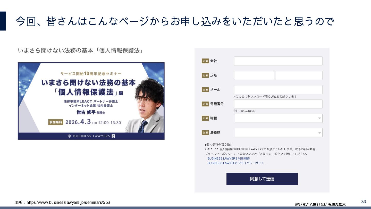 4/3(金)の12:00-13:30においてBUSINESS LAWYERS / 弁護士ドットコム株式会社様で実施した、 「いまさら聞けない法務の基本「個人情報保護法」」の登壇資料です。 https://www.businesslawyers.jp/seminars/553