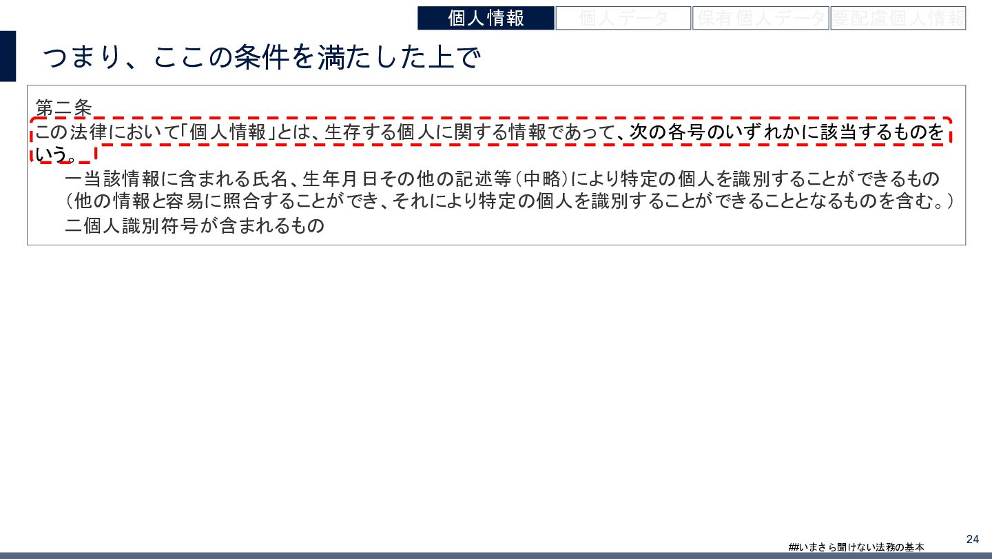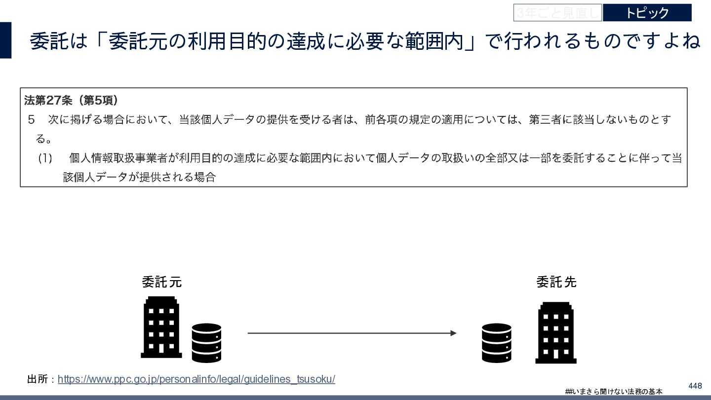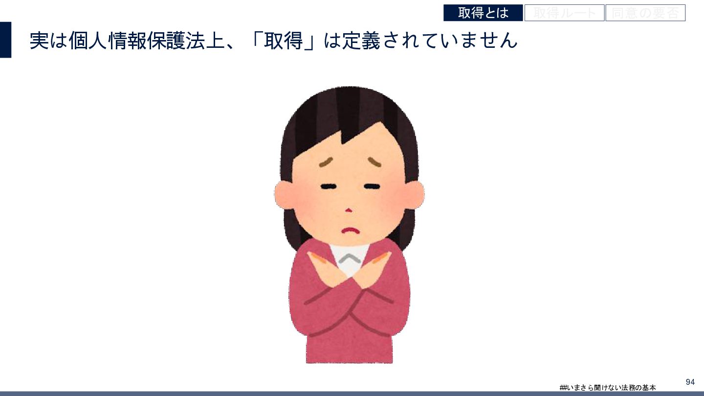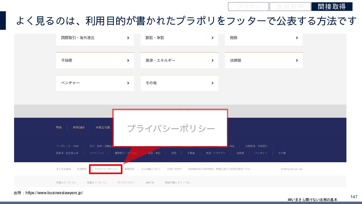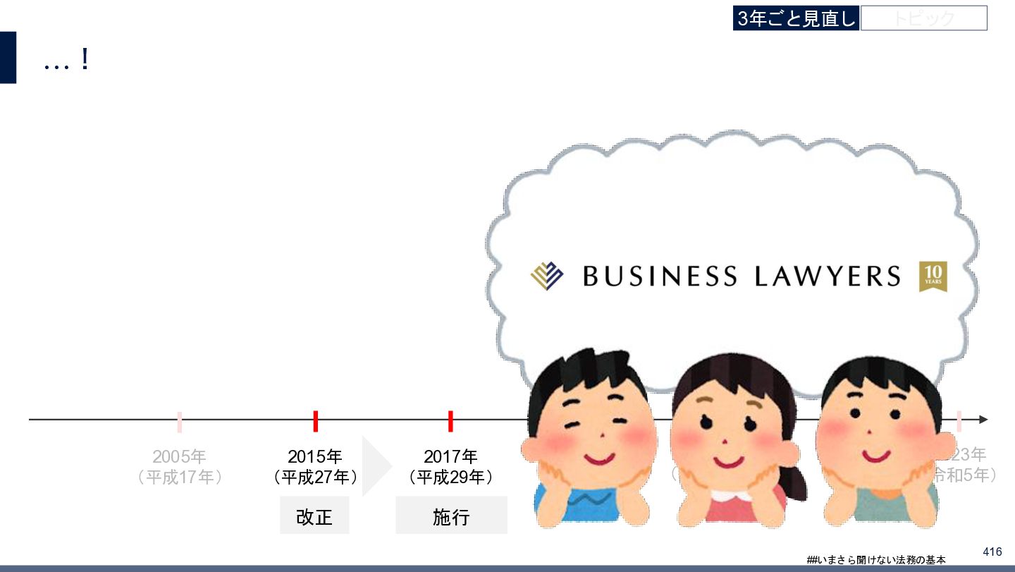 4/3(金)の12:00-13:30においてBUSINESS LAWYERS / 弁護士ドットコム株式会社様で実施した、 「いまさら聞けない法務の基本「個人情報保護法」」の登壇資料です。 https://www.businesslawyers.jp/seminars/553