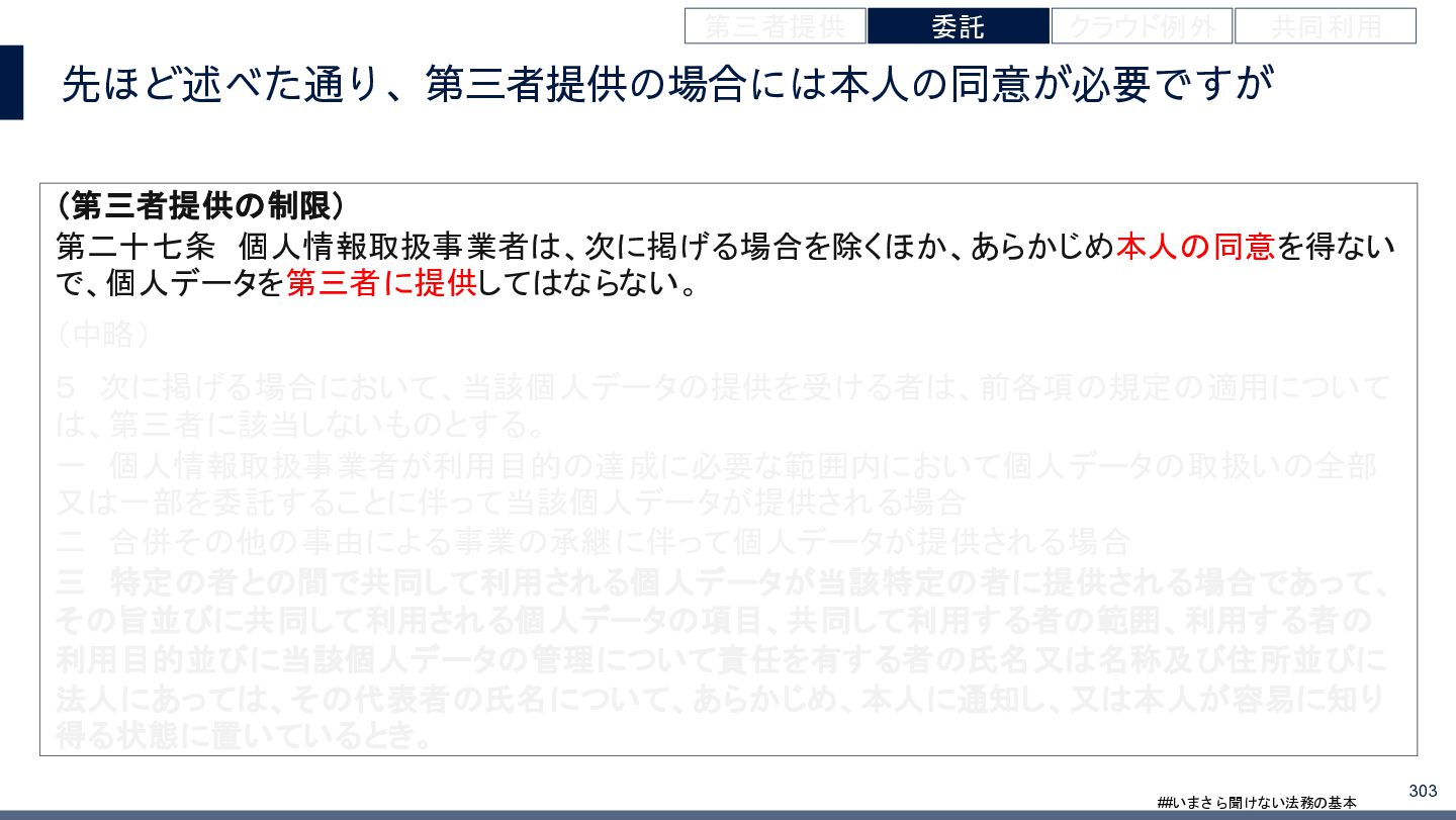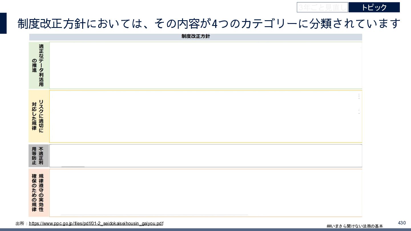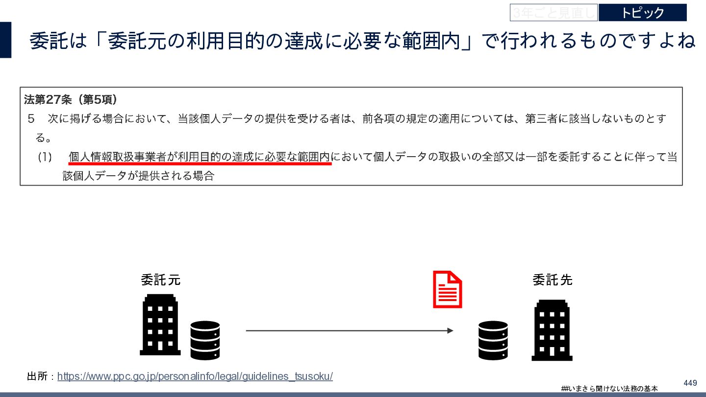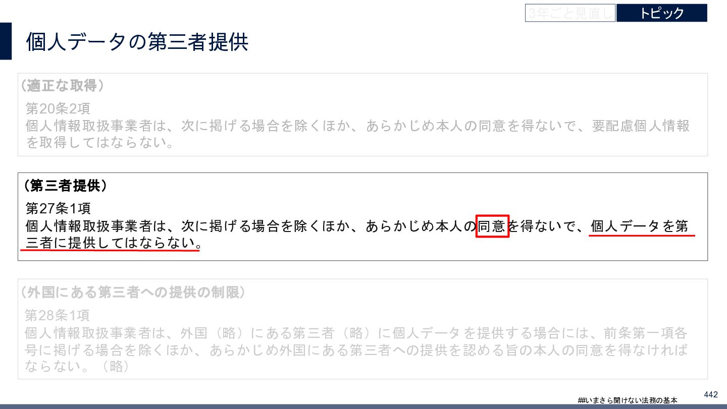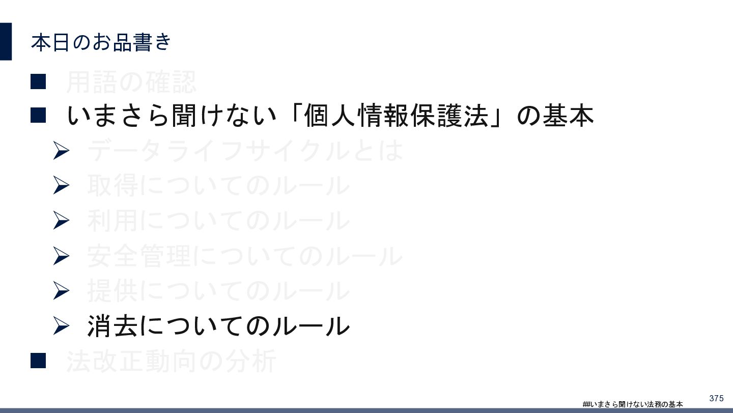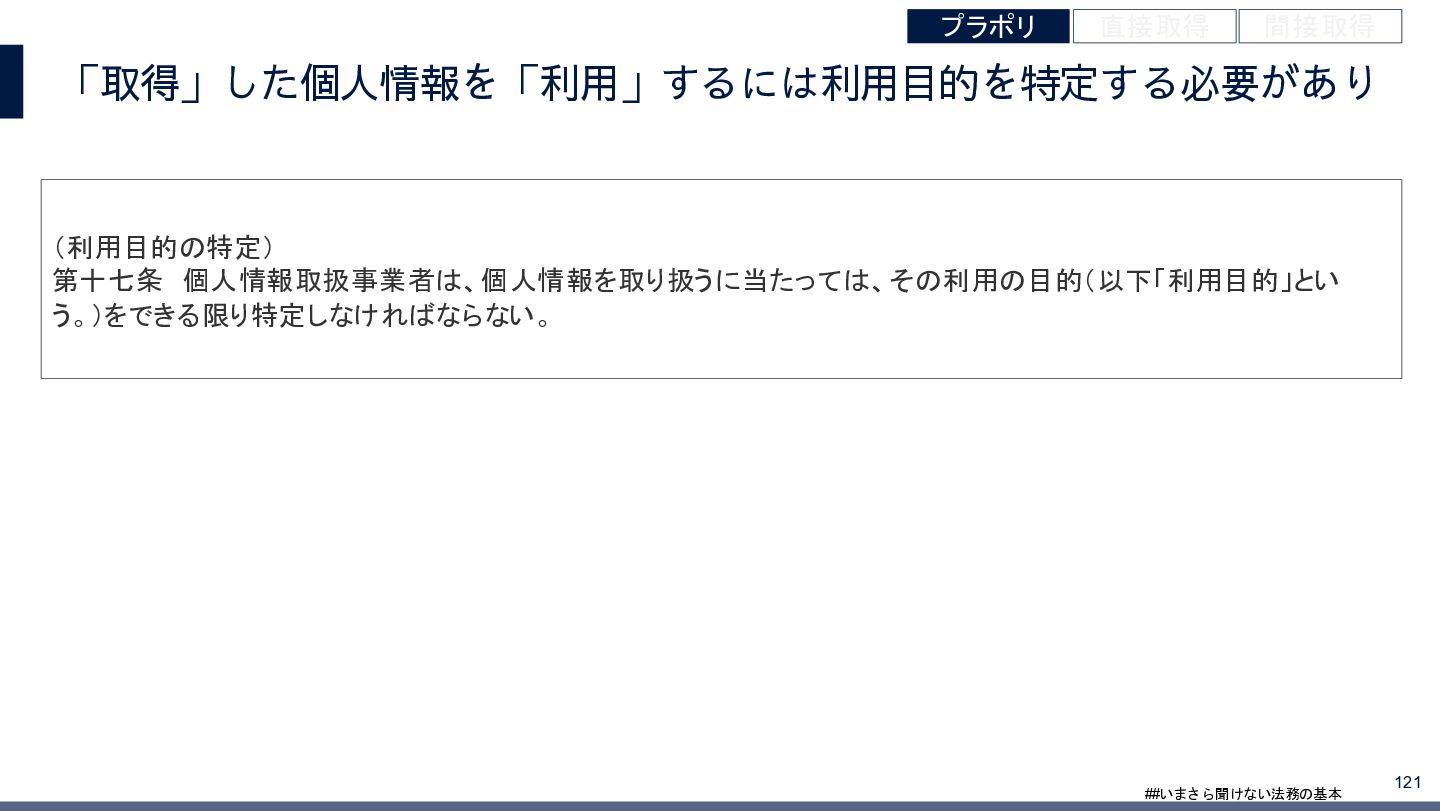 4/3(金)の12:00-13:30においてBUSINESS LAWYERS / 弁護士ドットコム株式会社様で実施した、 「いまさら聞けない法務の基本「個人情報保護法」」の登壇資料です。 https://www.businesslawyers.jp/seminars/553