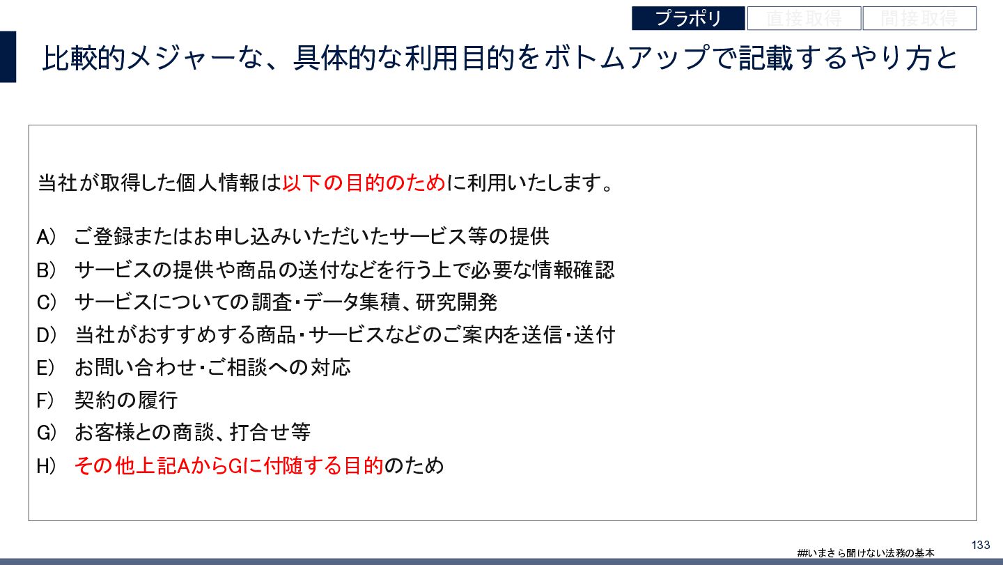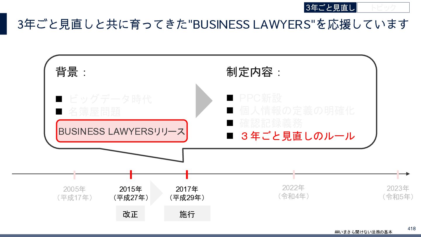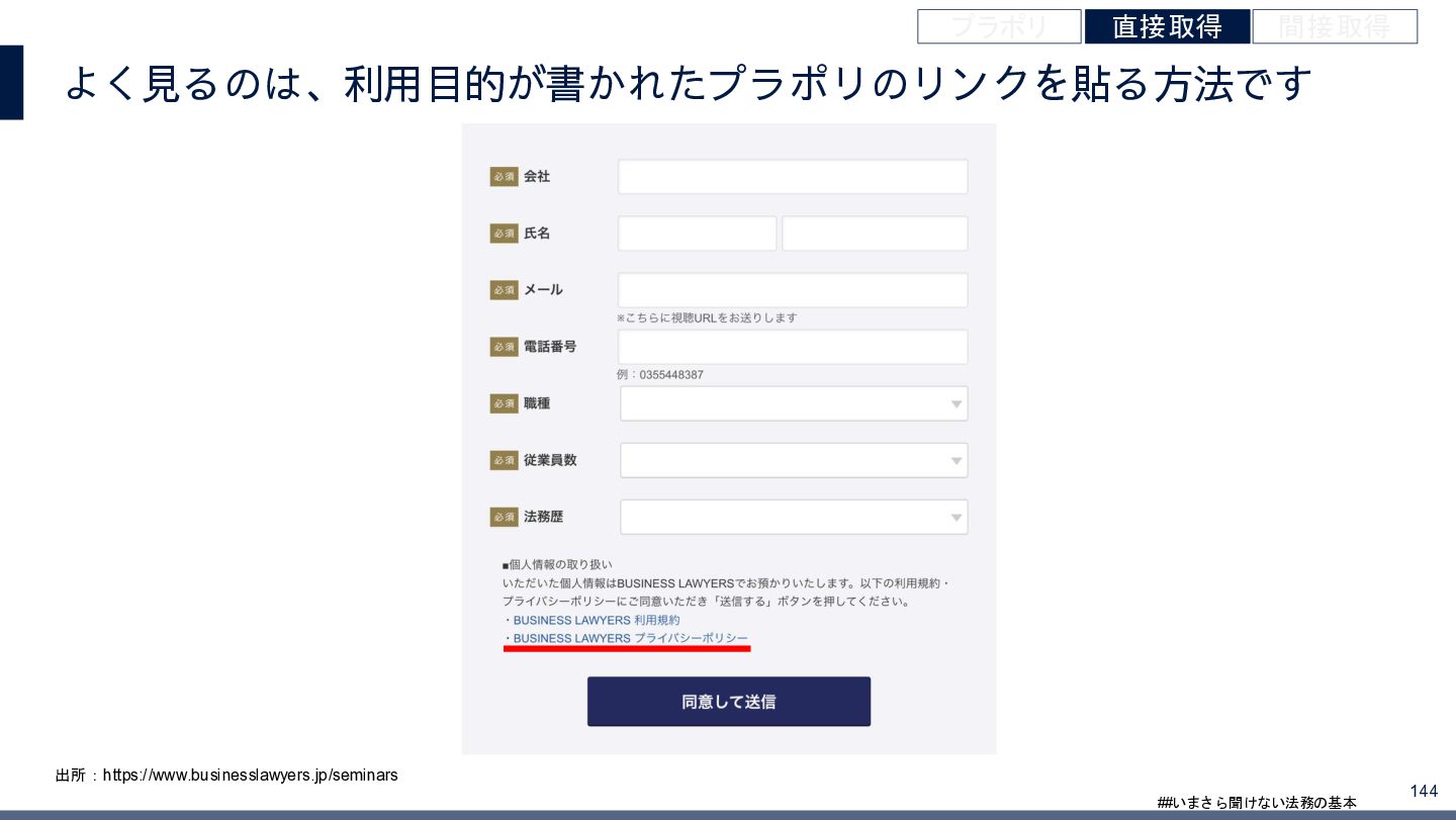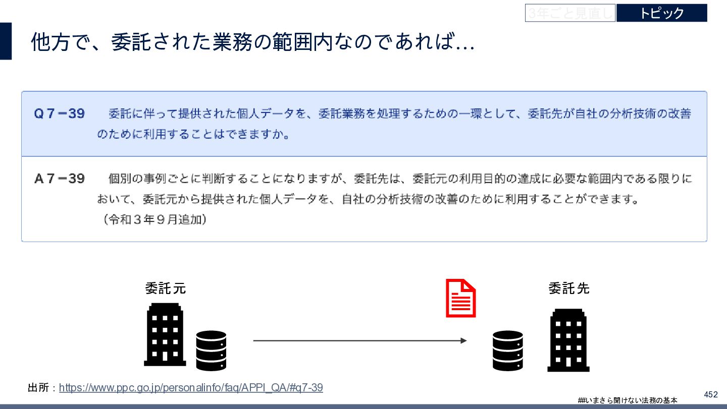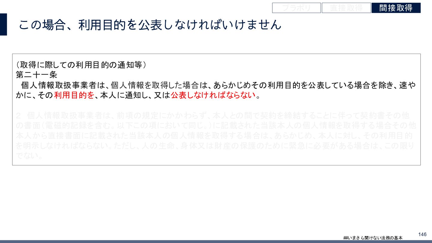 4/3(金)の12:00-13:30においてBUSINESS LAWYERS / 弁護士ドットコム株式会社様で実施した、 「いまさら聞けない法務の基本「個人情報保護法」」の登壇資料です。 https://www.businesslawyers.jp/seminars/553
