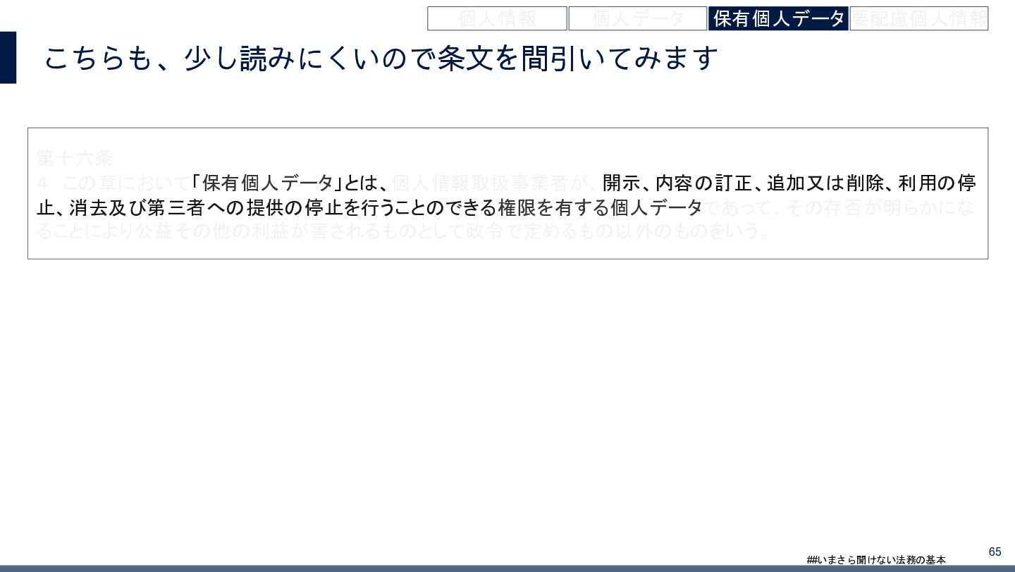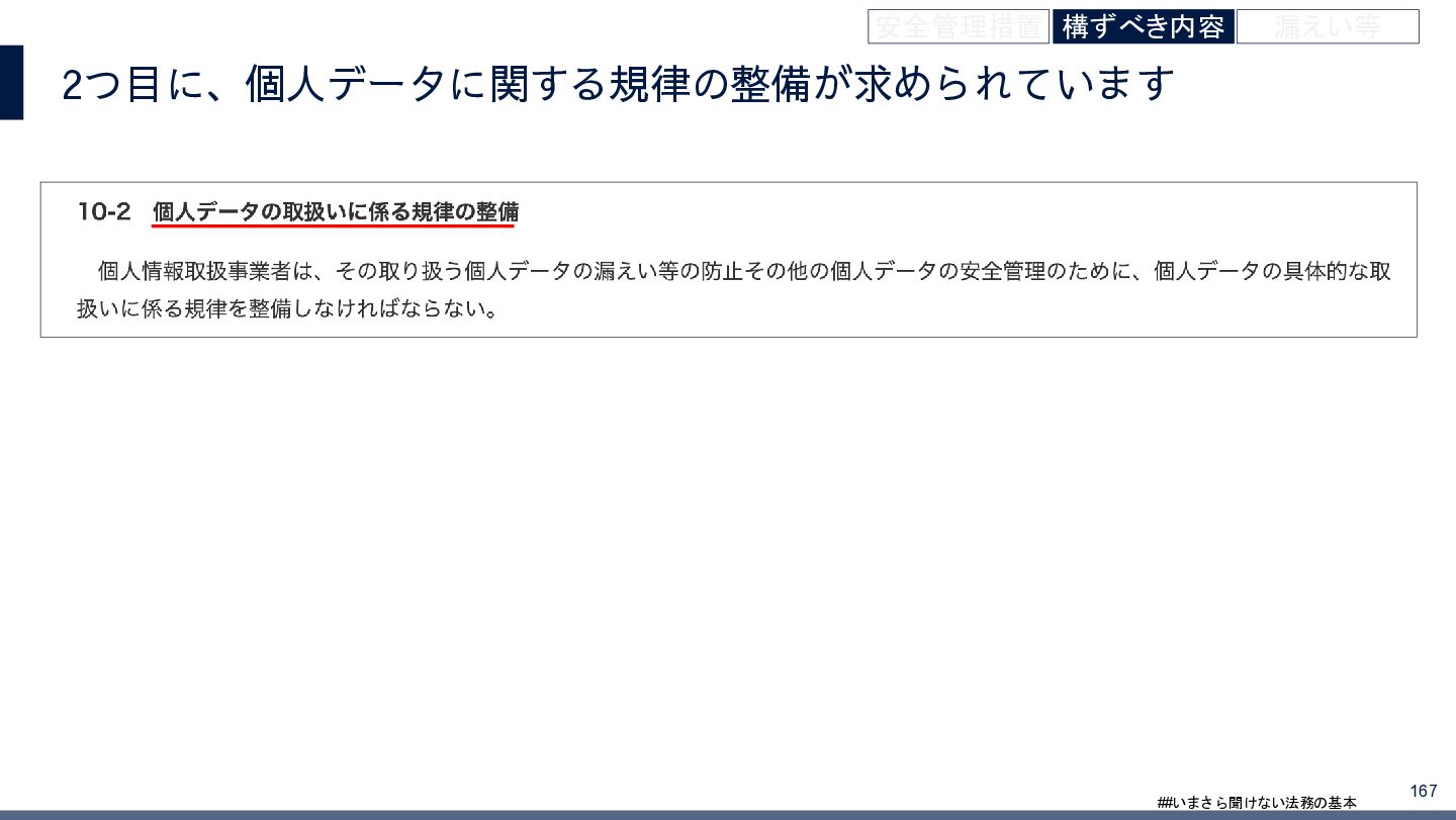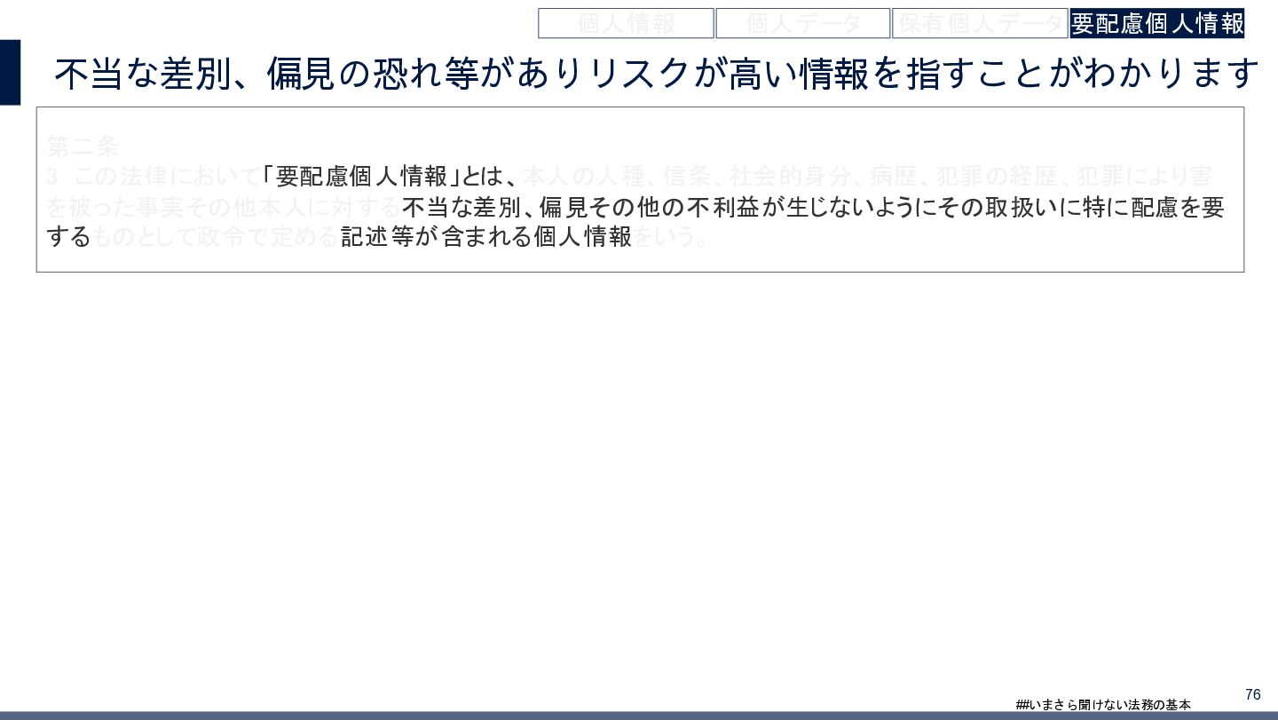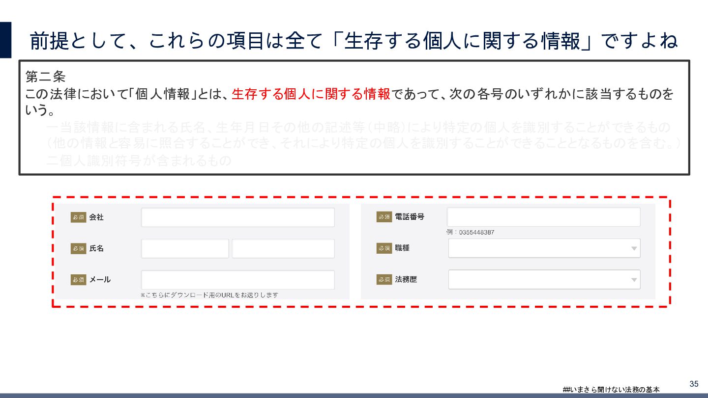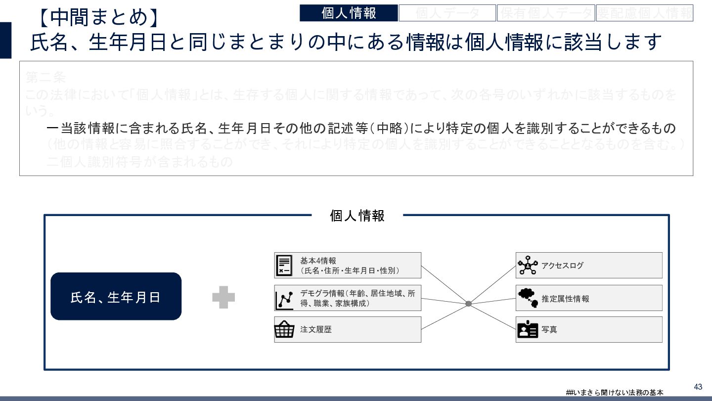 4/3(金)の12:00-13:30においてBUSINESS LAWYERS / 弁護士ドットコム株式会社様で実施した、 「いまさら聞けない法務の基本「個人情報保護法」」の登壇資料です。 https://www.businesslawyers.jp/seminars/553