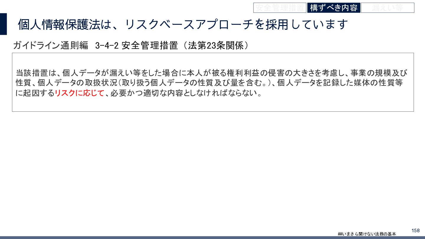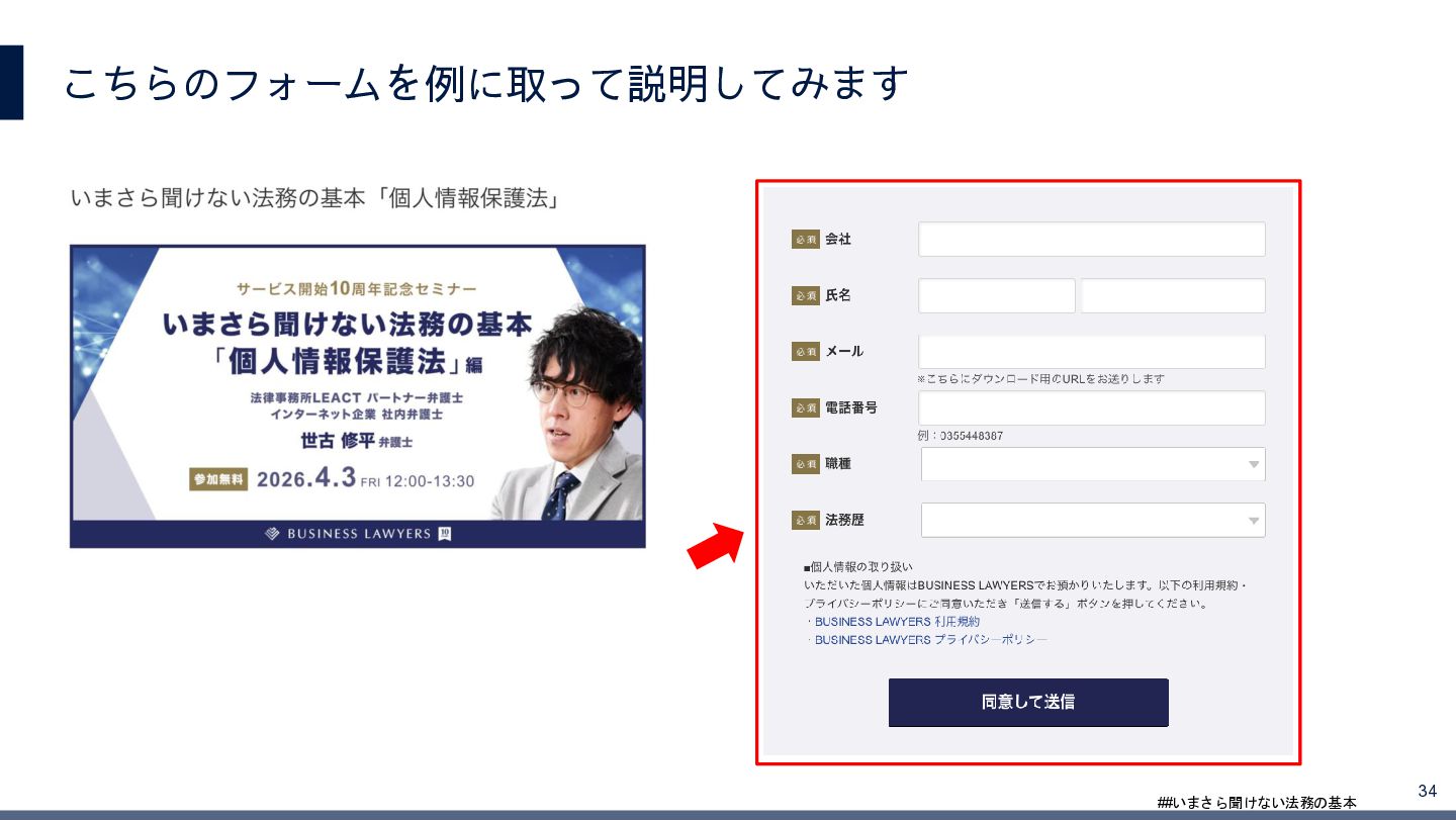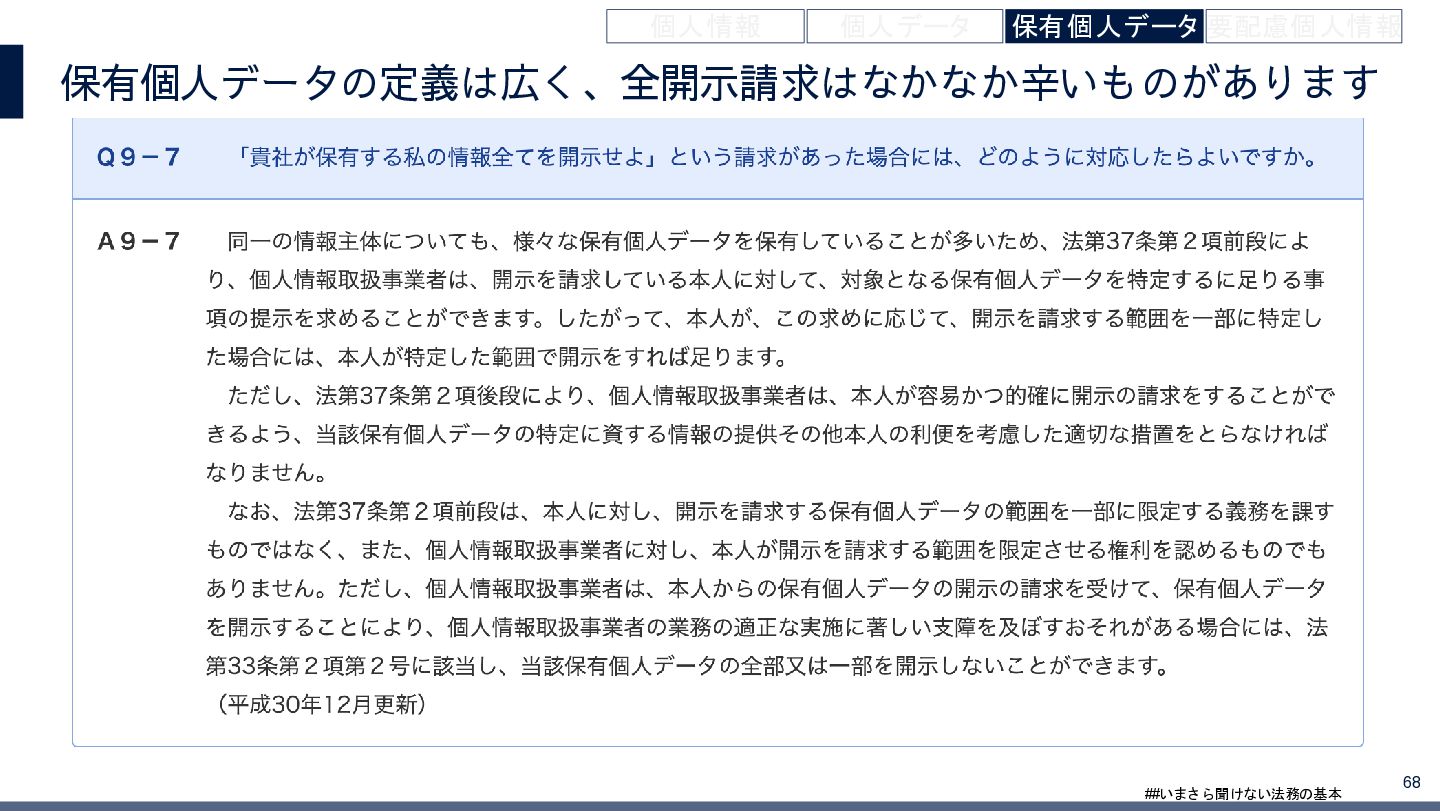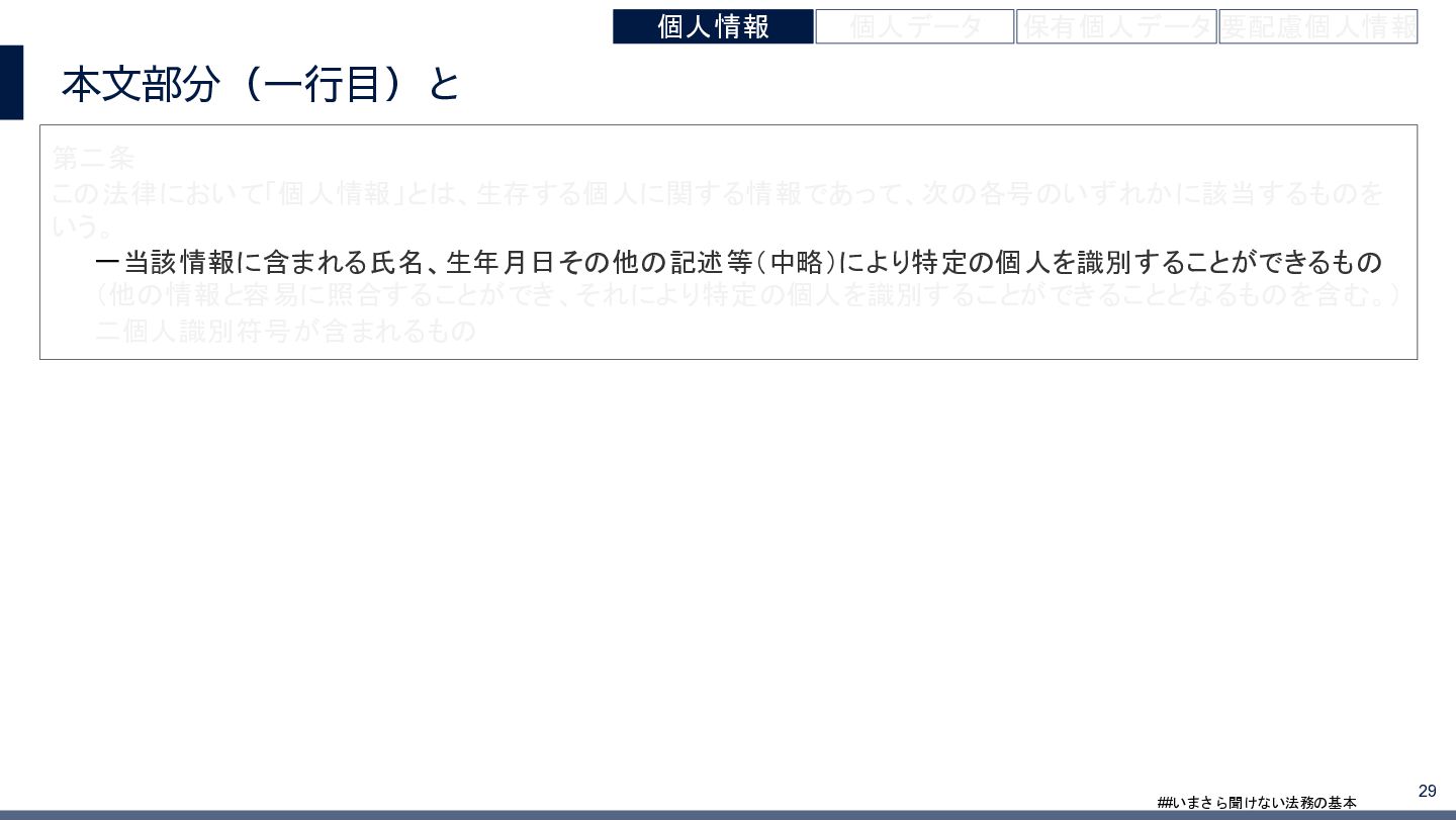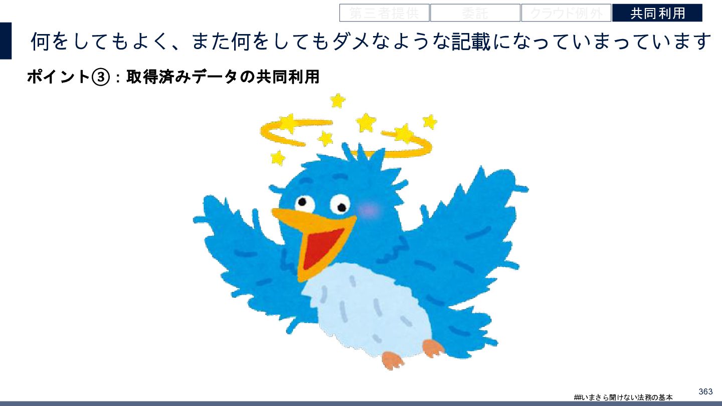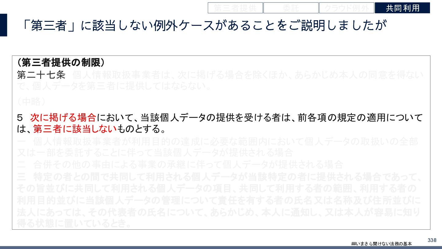 4/3(金)の12:00-13:30においてBUSINESS LAWYERS / 弁護士ドットコム株式会社様で実施した、 「いまさら聞けない法務の基本「個人情報保護法」」の登壇資料です。 https://www.businesslawyers.jp/seminars/553