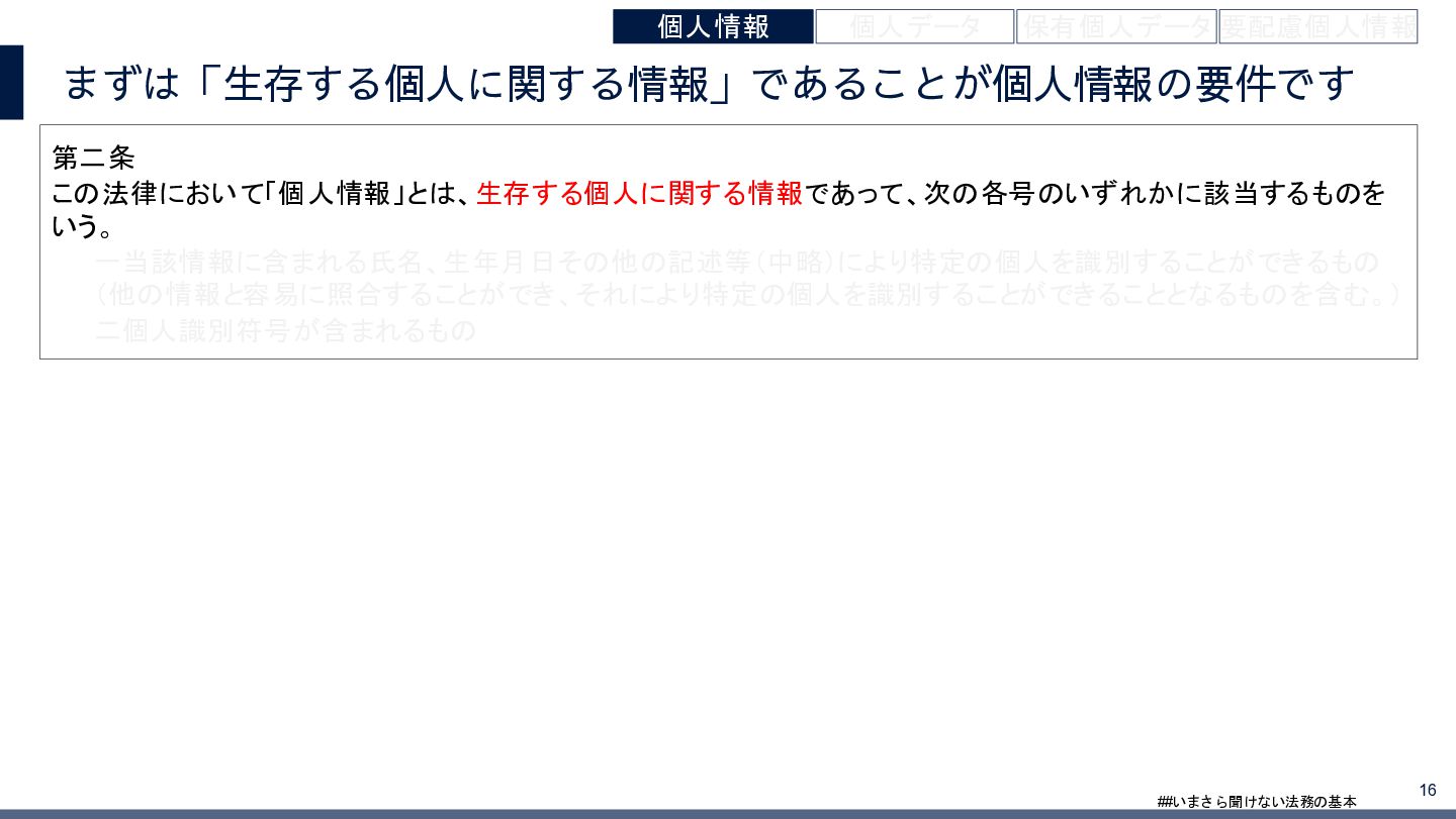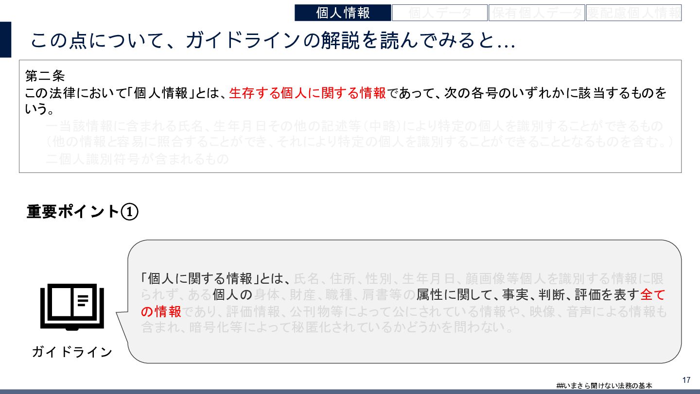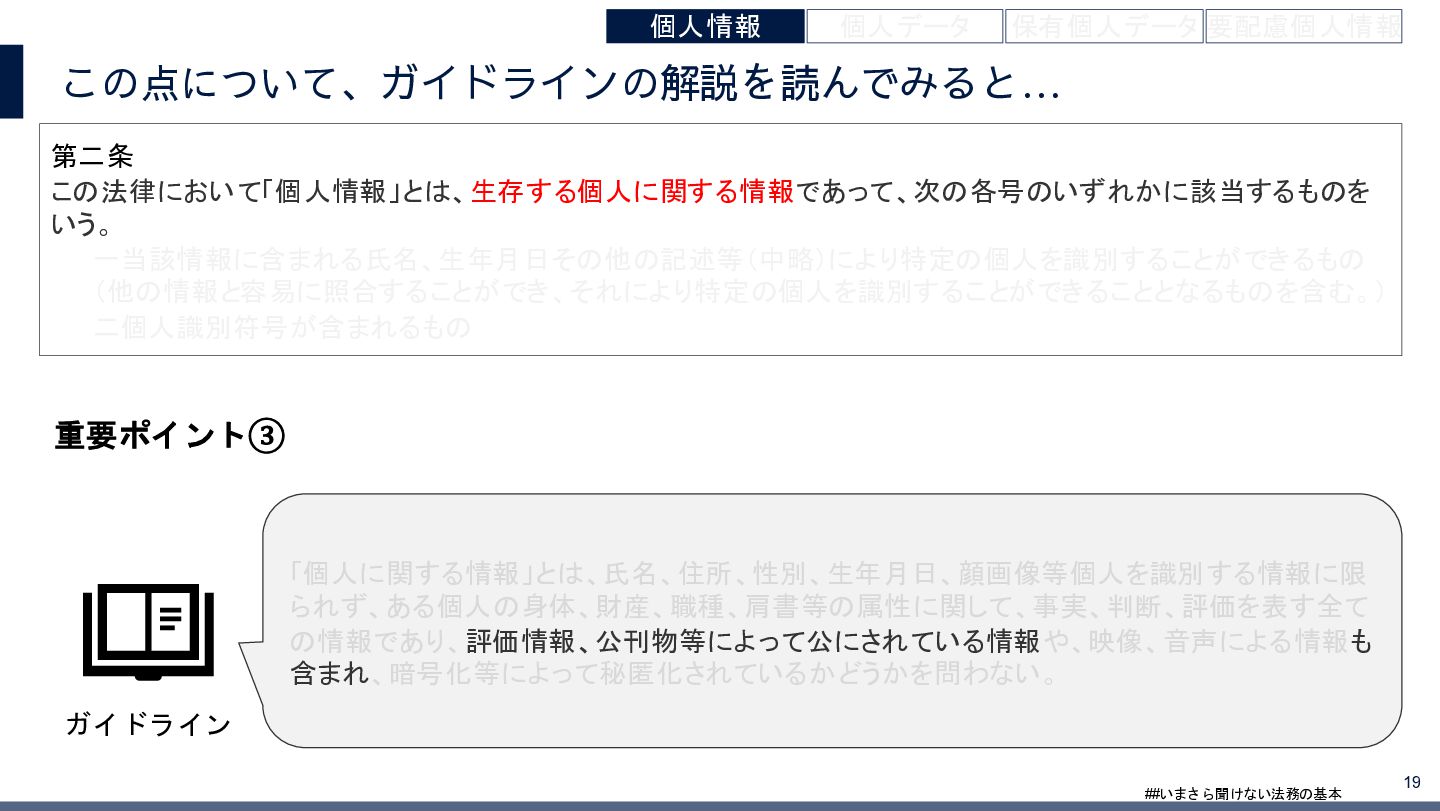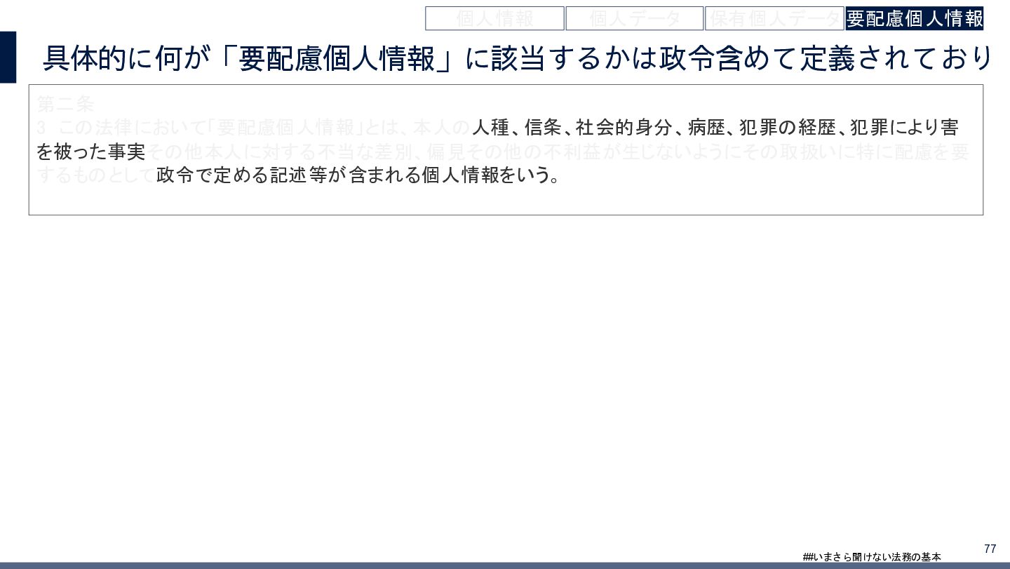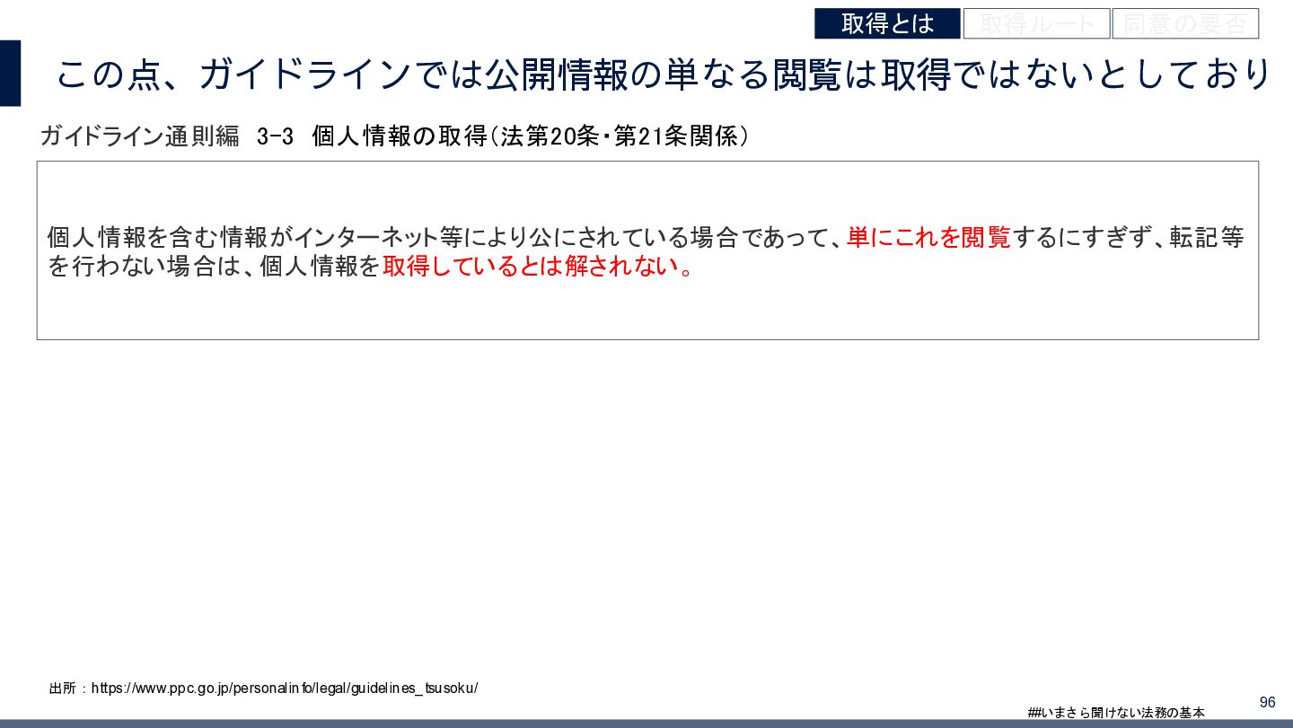 4/3(金)の12:00-13:30においてBUSINESS LAWYERS / 弁護士ドットコム株式会社様で実施した、 「いまさら聞けない法務の基本「個人情報保護法」」の登壇資料です。 https://www.businesslawyers.jp/seminars/553