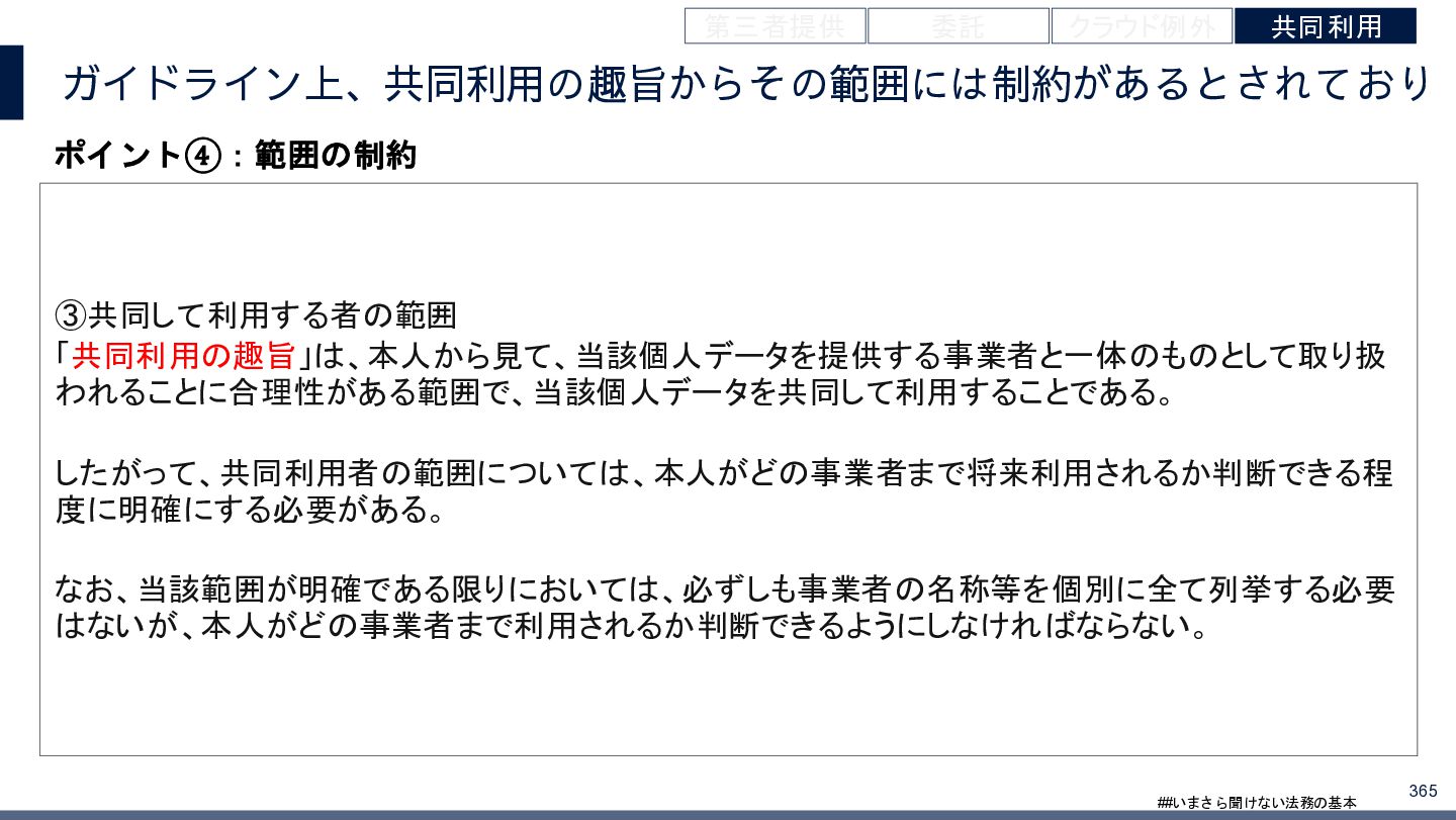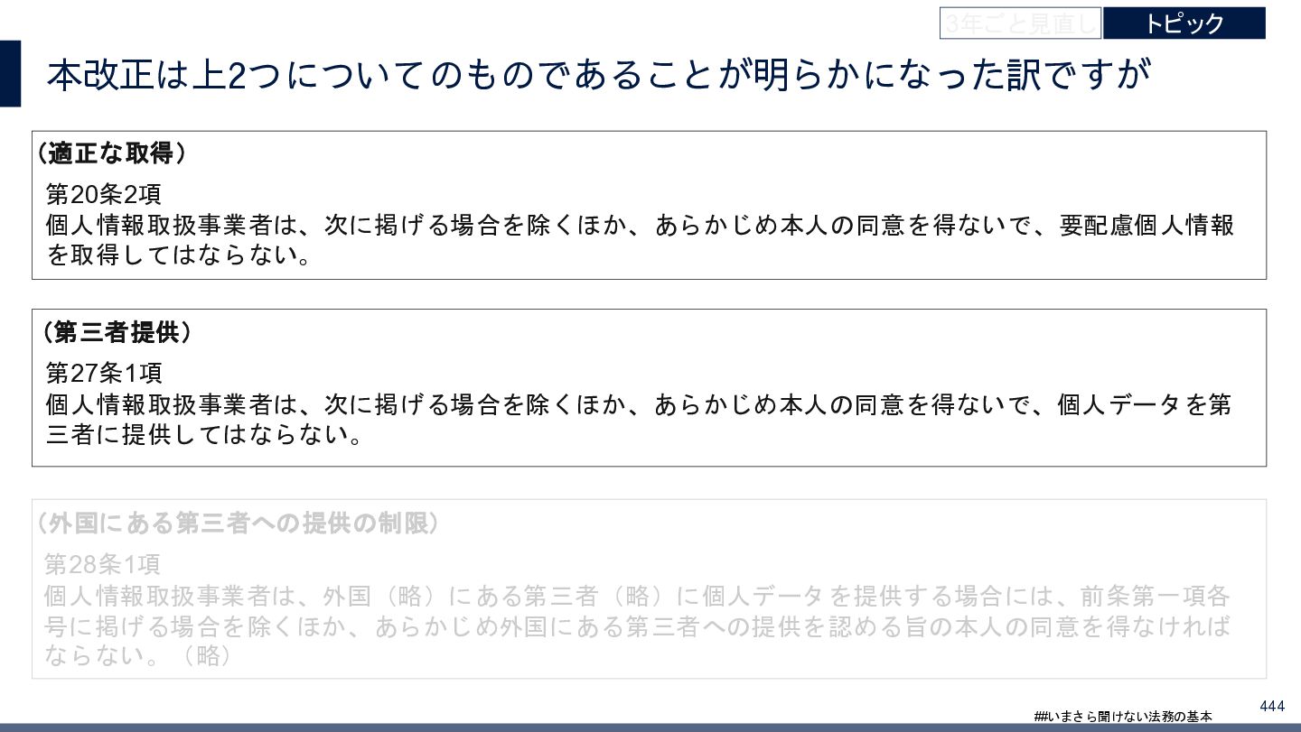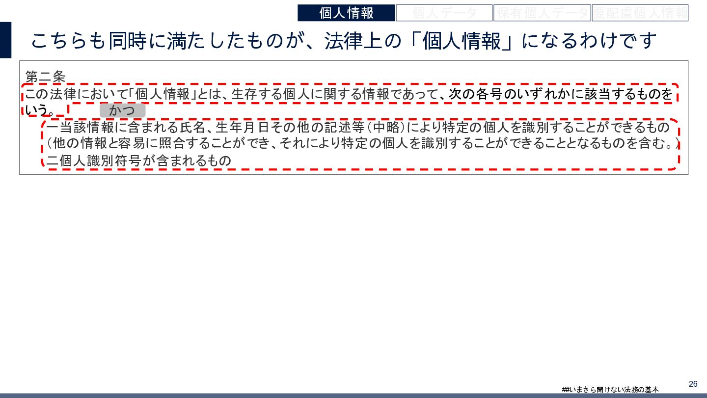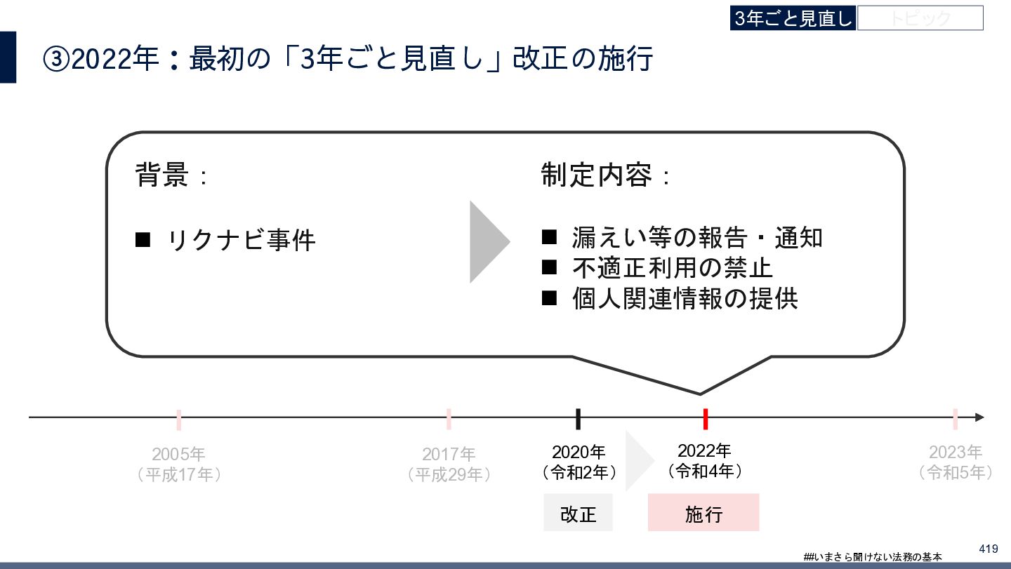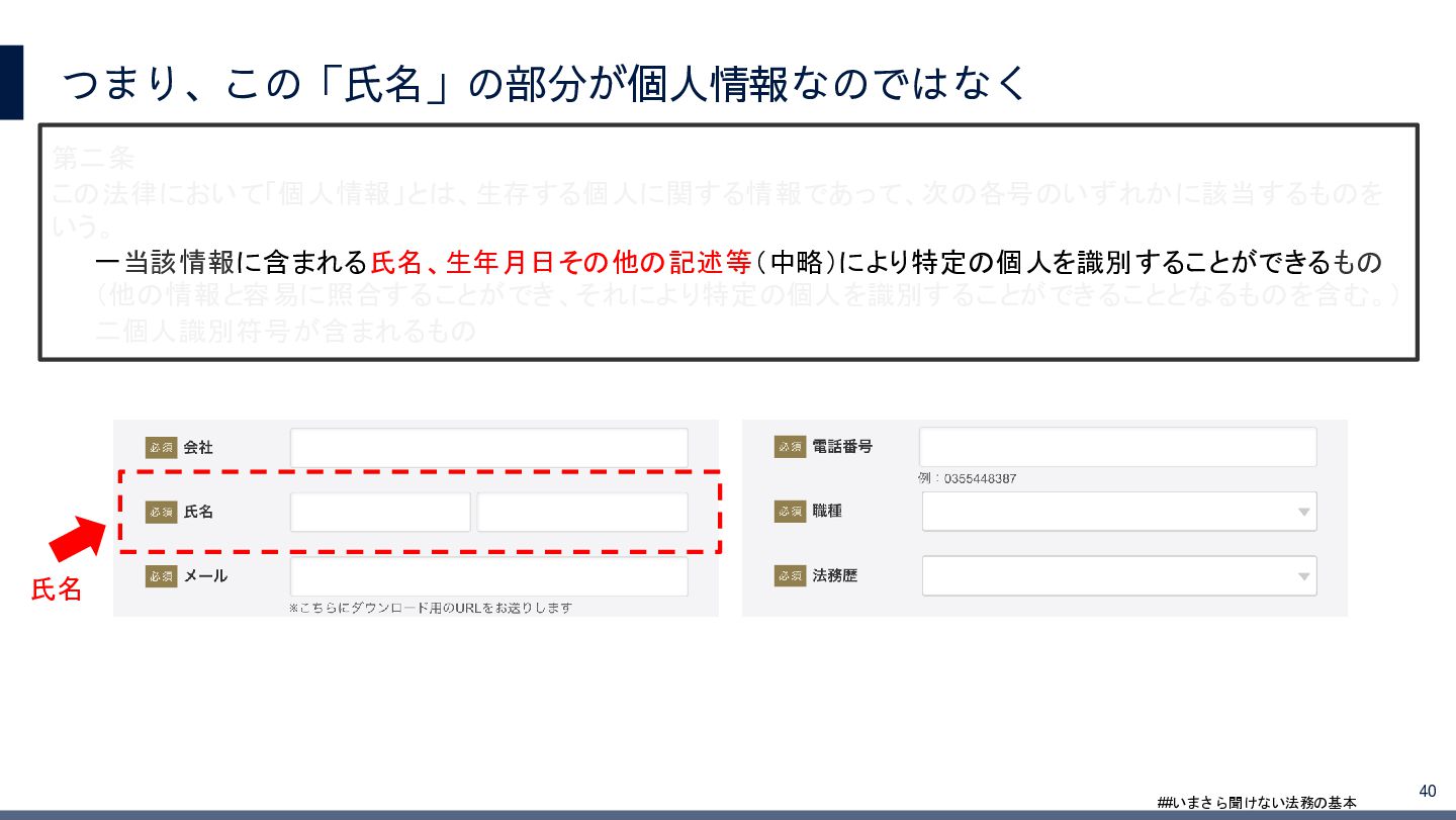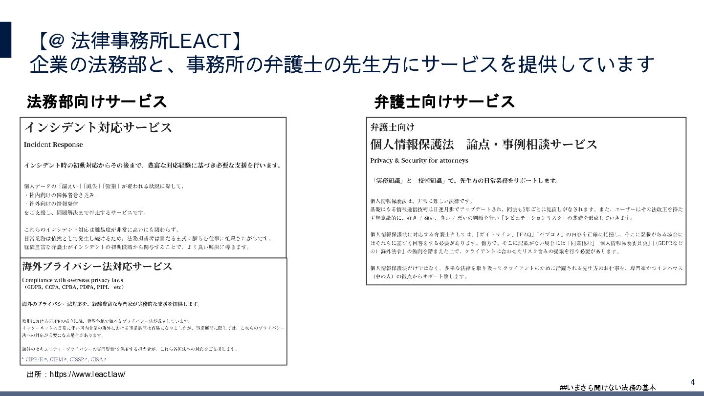 4/3(金)の12:00-13:30においてBUSINESS LAWYERS / 弁護士ドットコム株式会社様で実施した、 「いまさら聞けない法務の基本「個人情報保護法」」の登壇資料です。 https://www.businesslawyers.jp/seminars/553