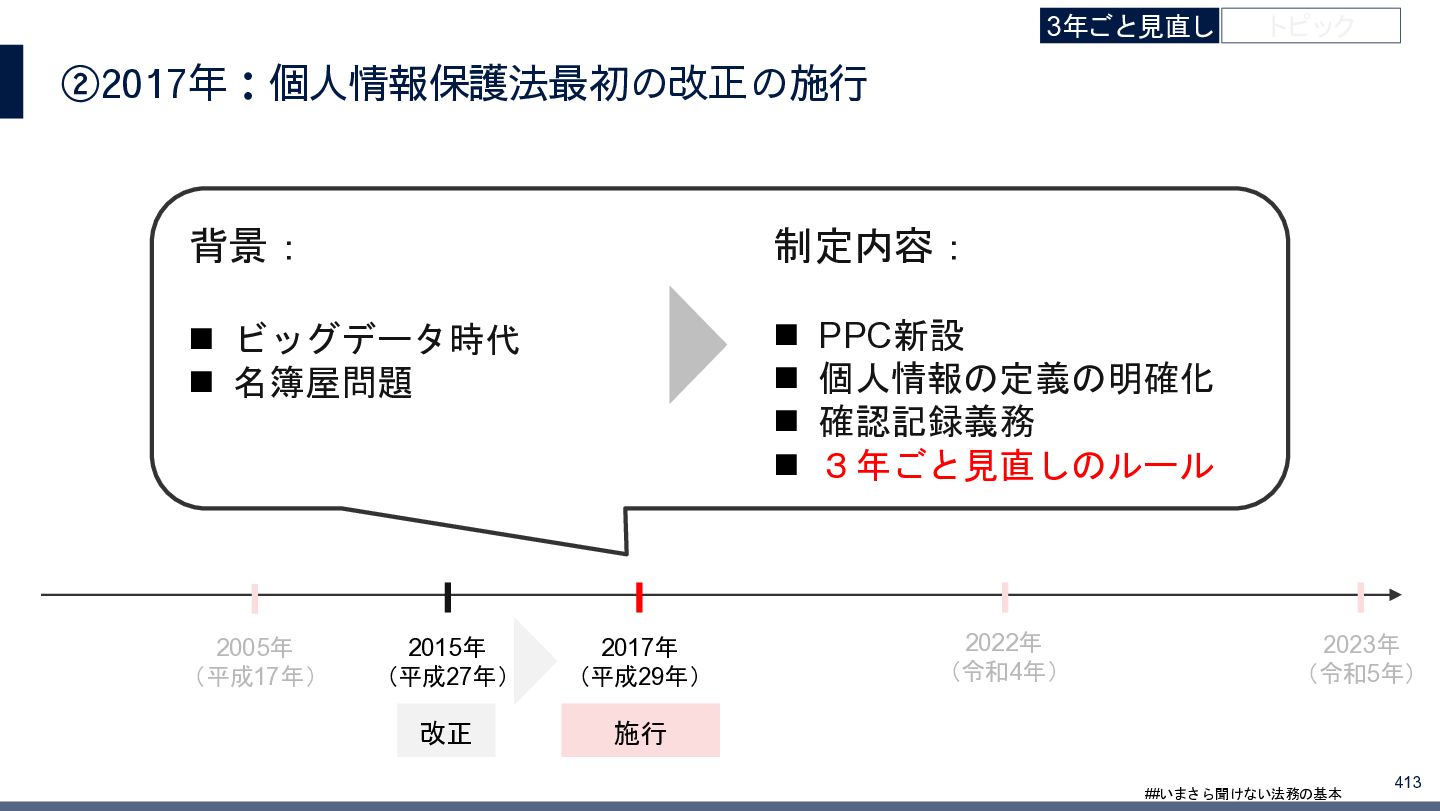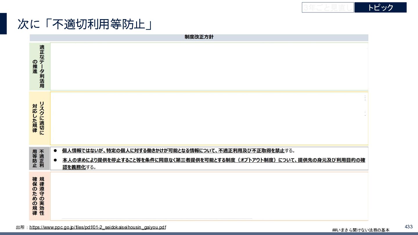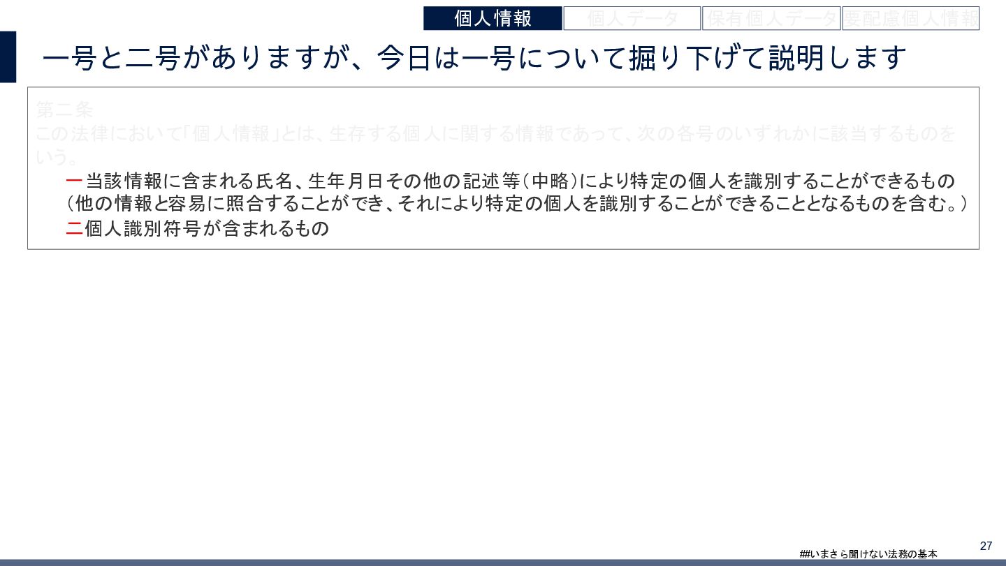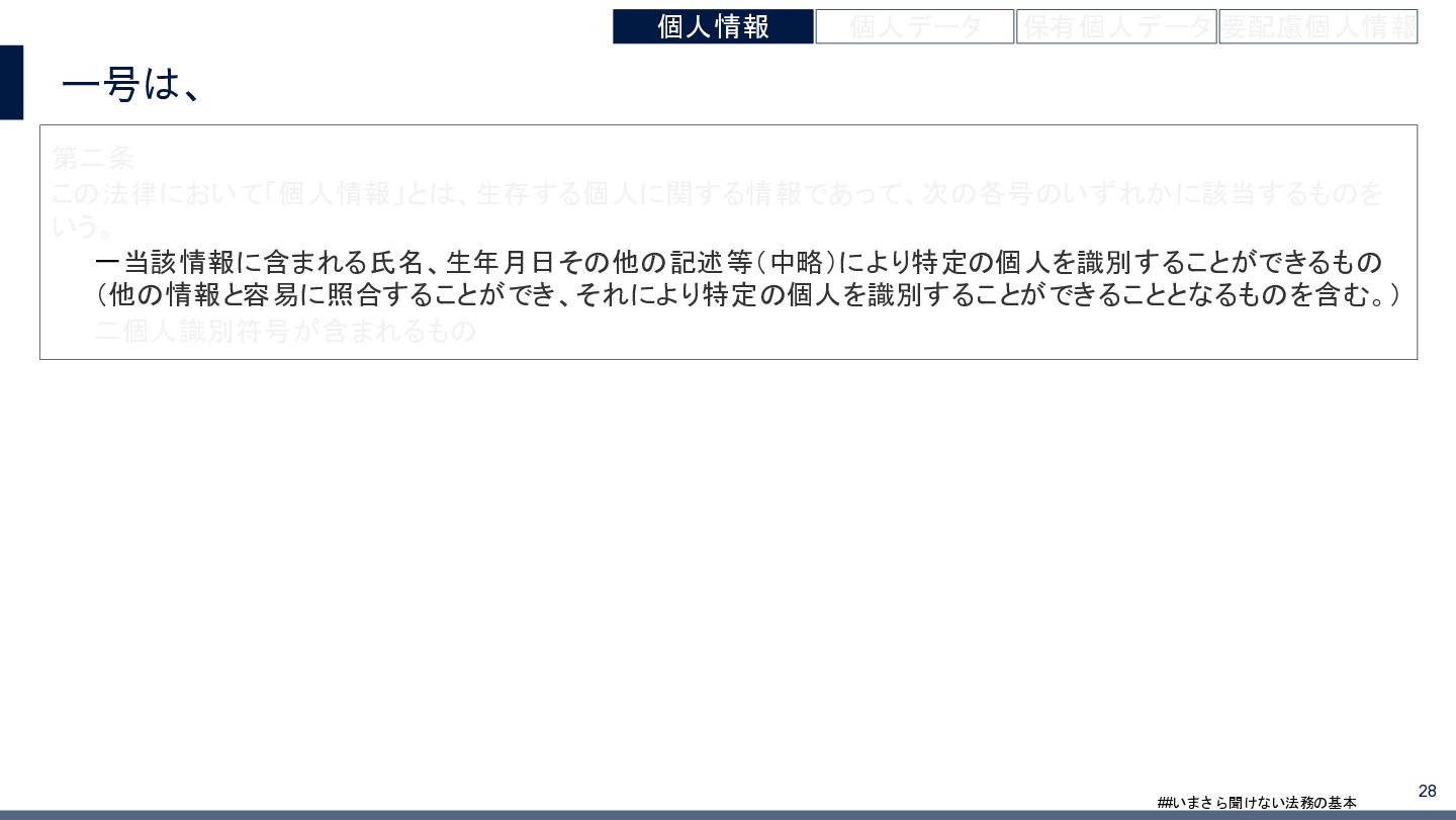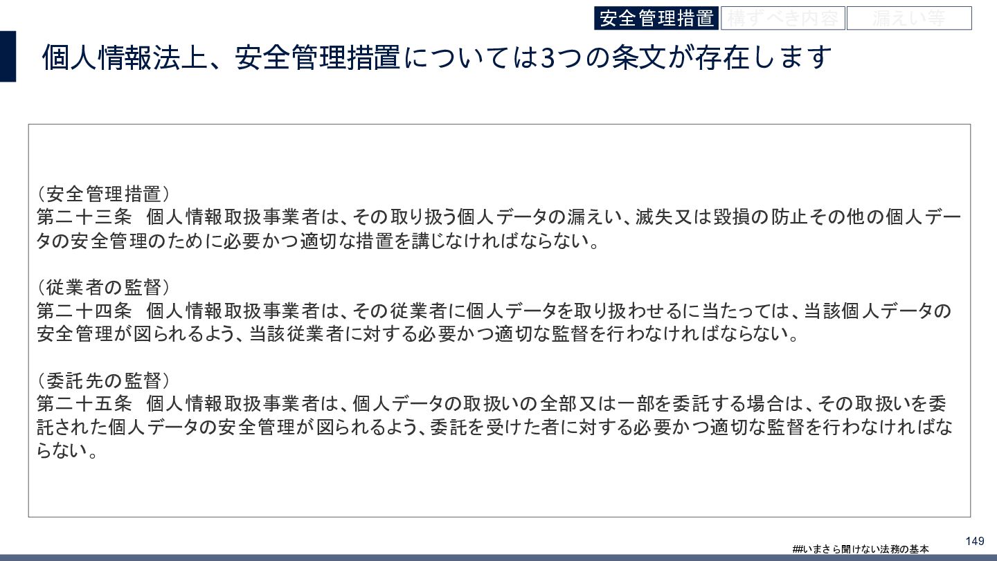 4/3(金)の12:00-13:30においてBUSINESS LAWYERS / 弁護士ドットコム株式会社様で実施した、 「いまさら聞けない法務の基本「個人情報保護法」」の登壇資料です。 https://www.businesslawyers.jp/seminars/553