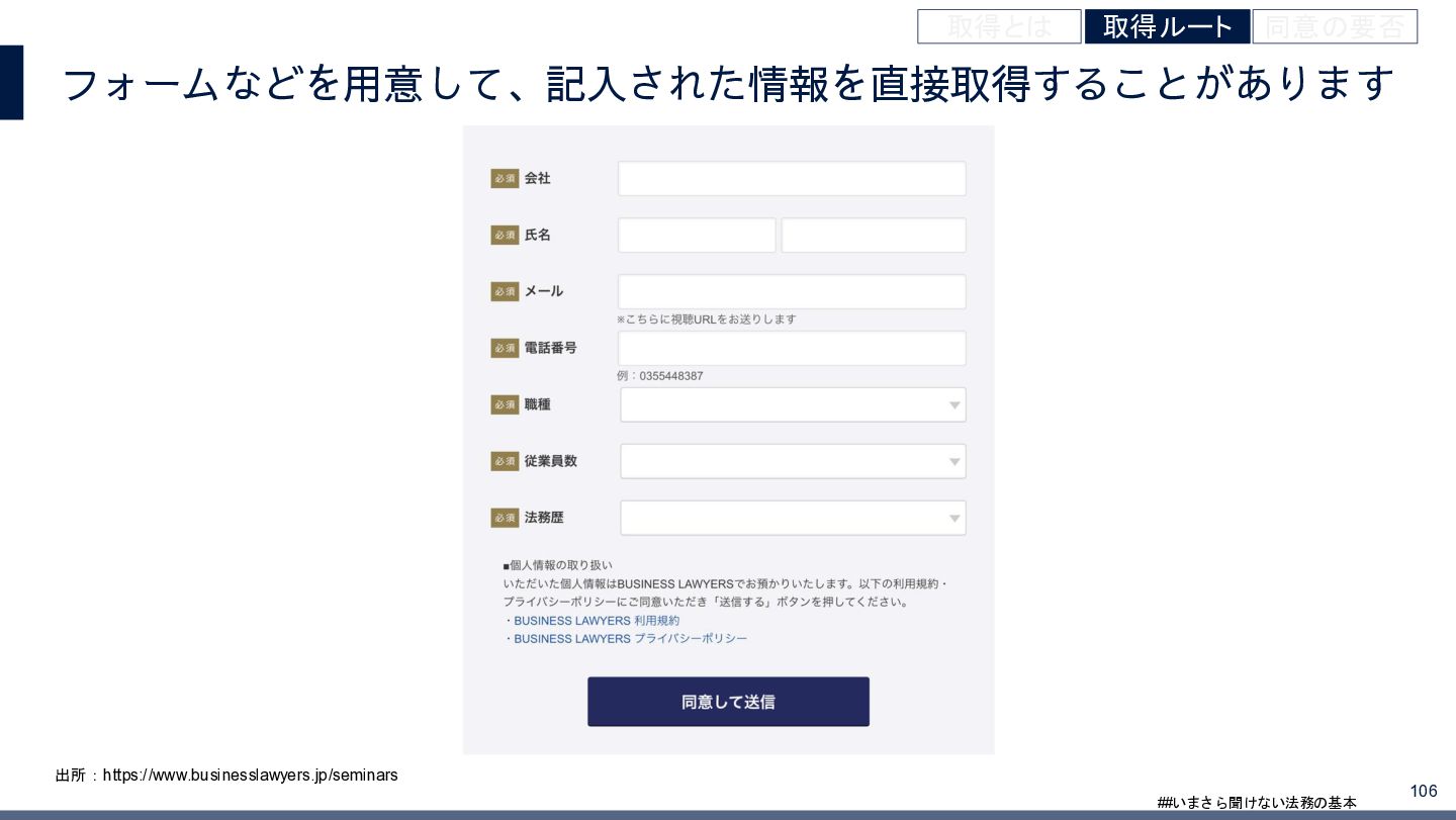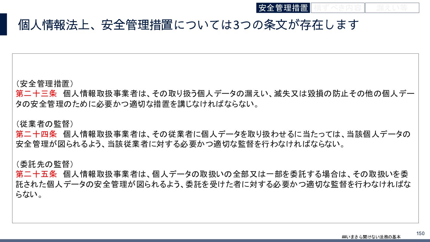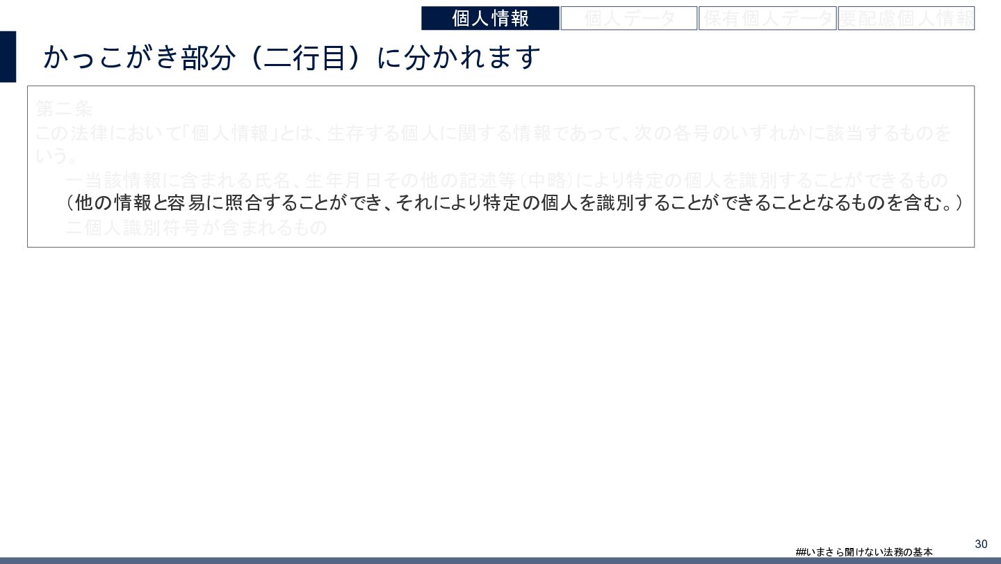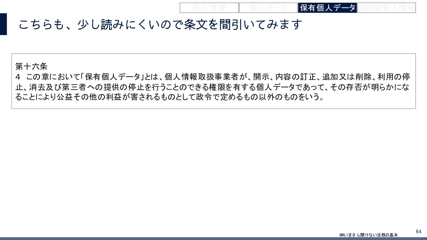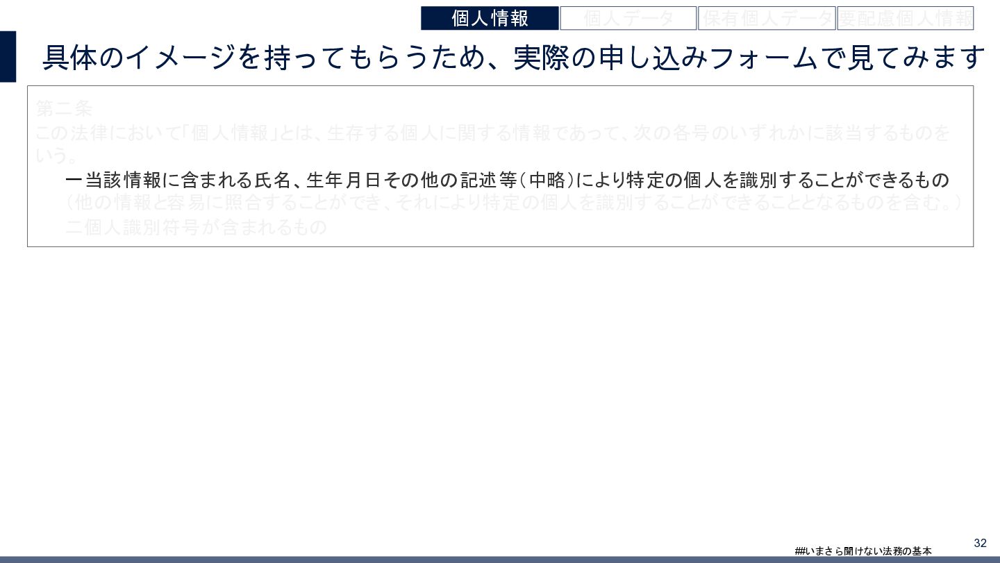 4/3(金)の12:00-13:30においてBUSINESS LAWYERS / 弁護士ドットコム株式会社様で実施した、 「いまさら聞けない法務の基本「個人情報保護法」」の登壇資料です。 https://www.businesslawyers.jp/seminars/553