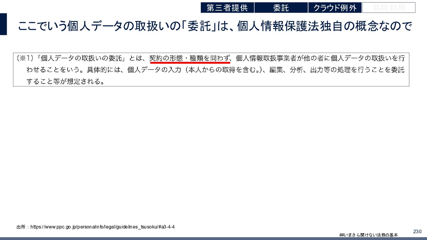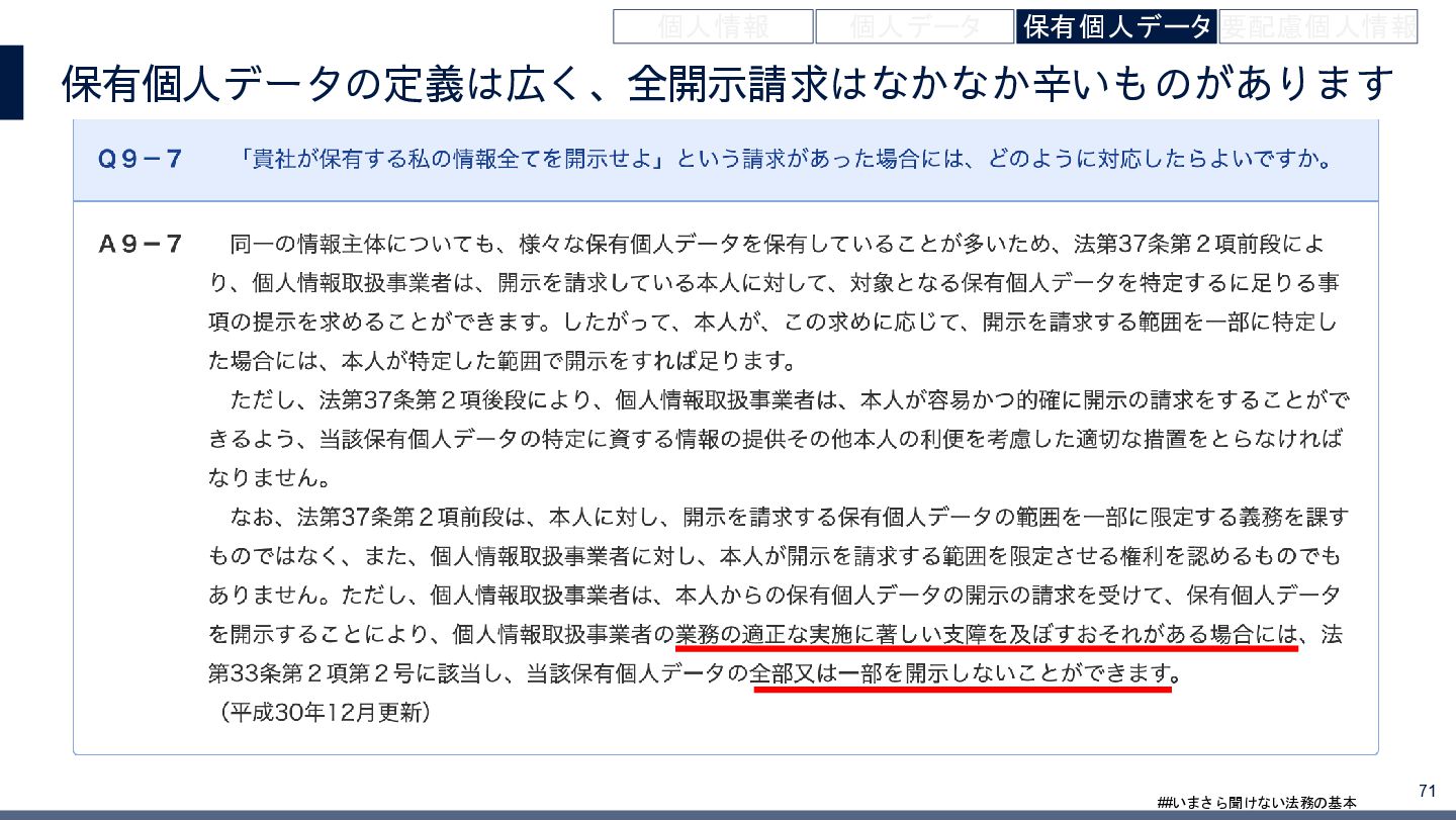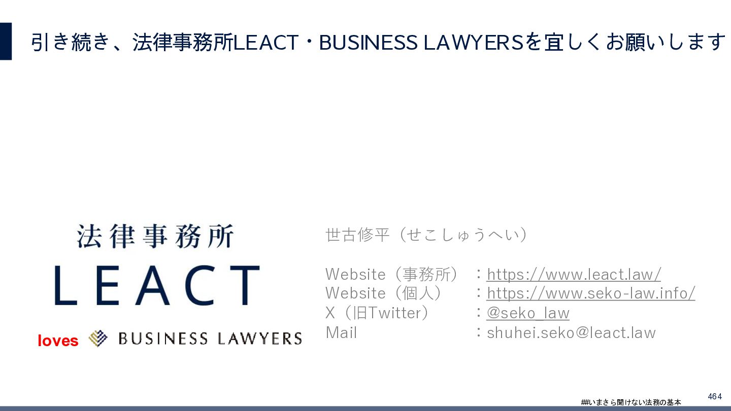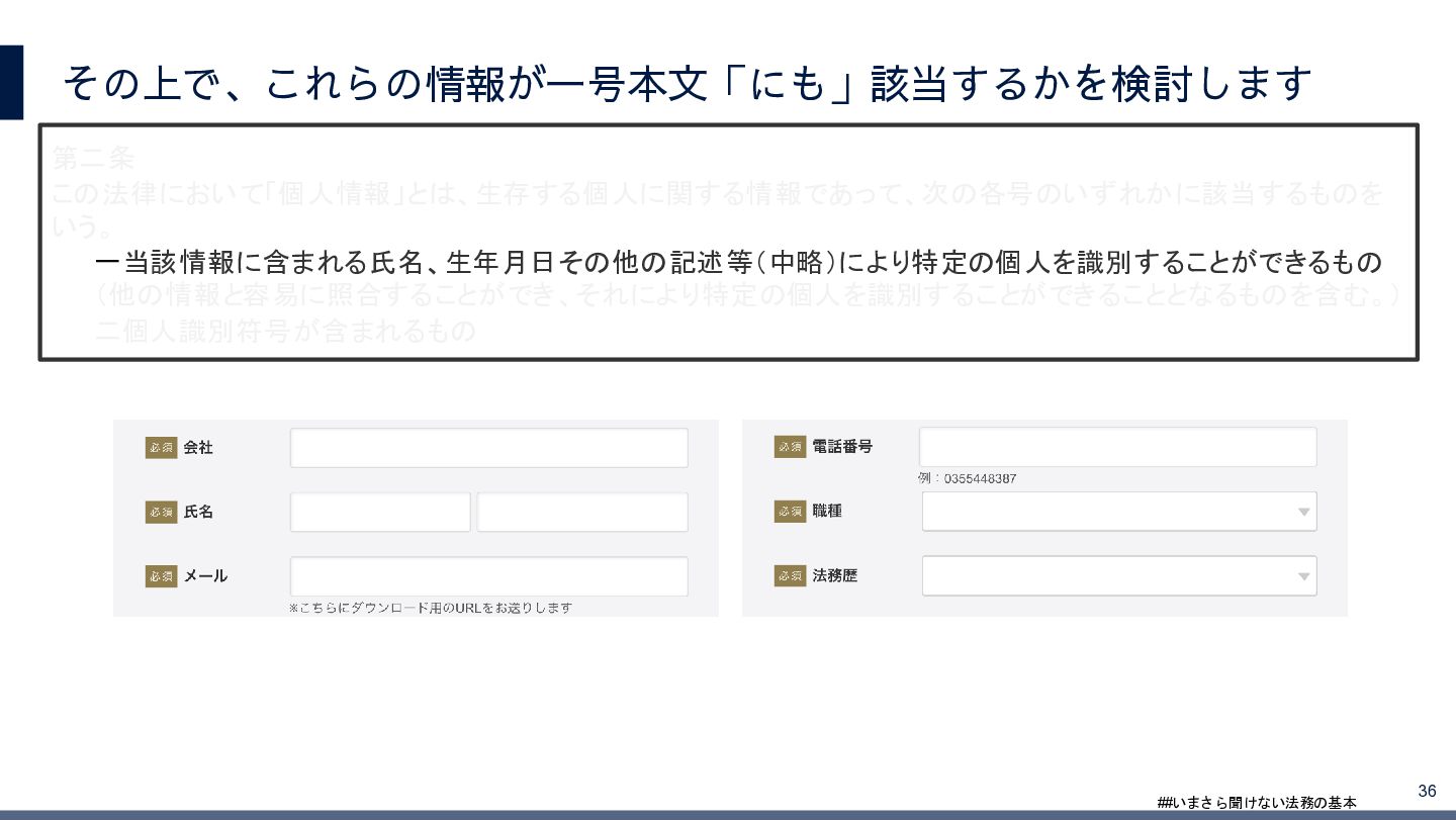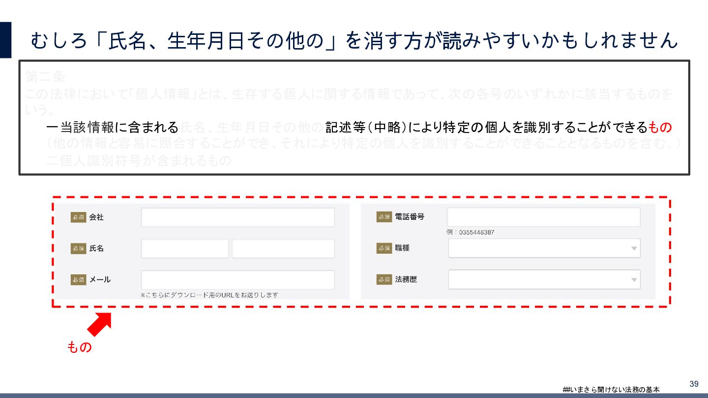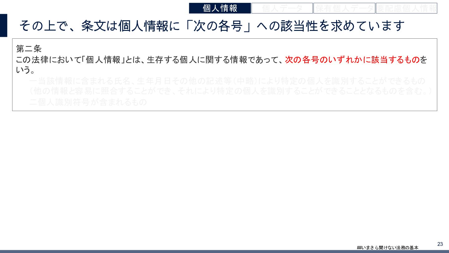 4/3(金)の12:00-13:30においてBUSINESS LAWYERS / 弁護士ドットコム株式会社様で実施した、 「いまさら聞けない法務の基本「個人情報保護法」」の登壇資料です。 https://www.businesslawyers.jp/seminars/553