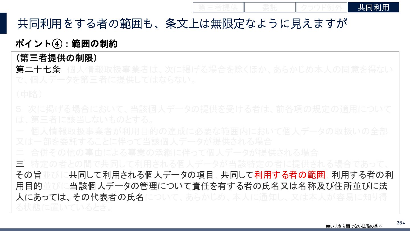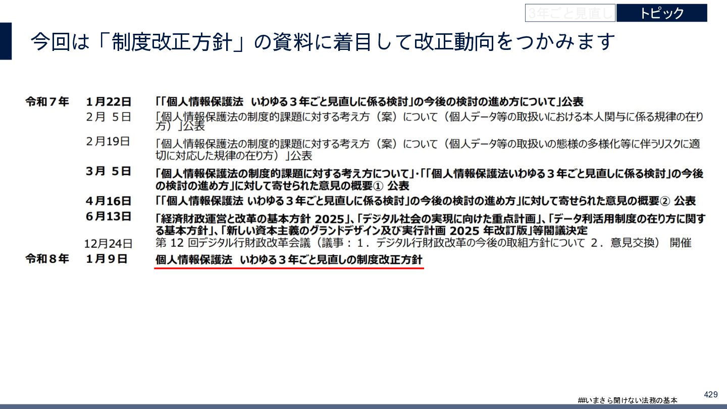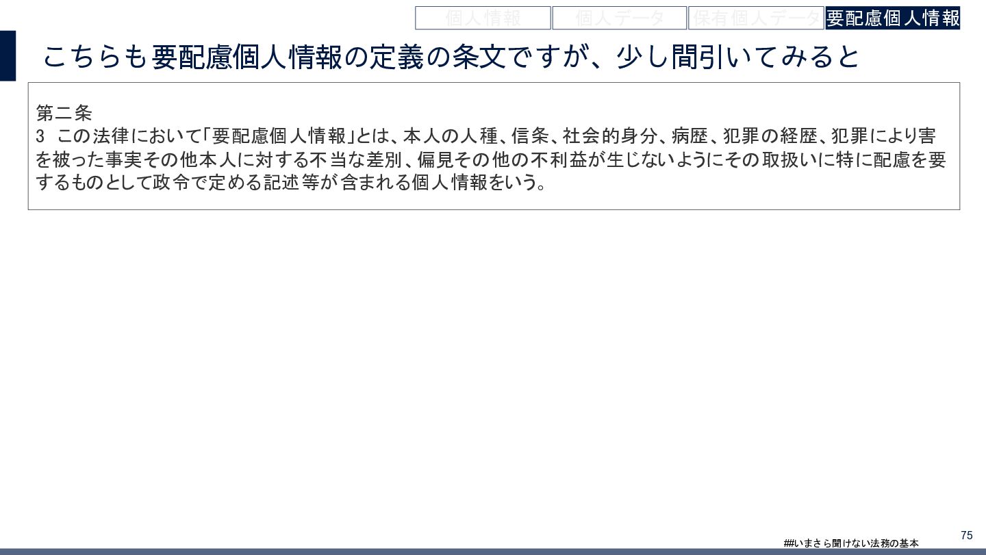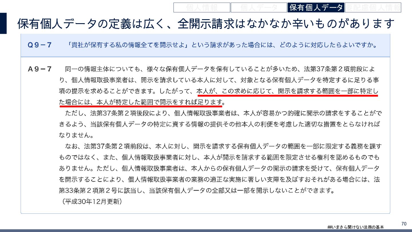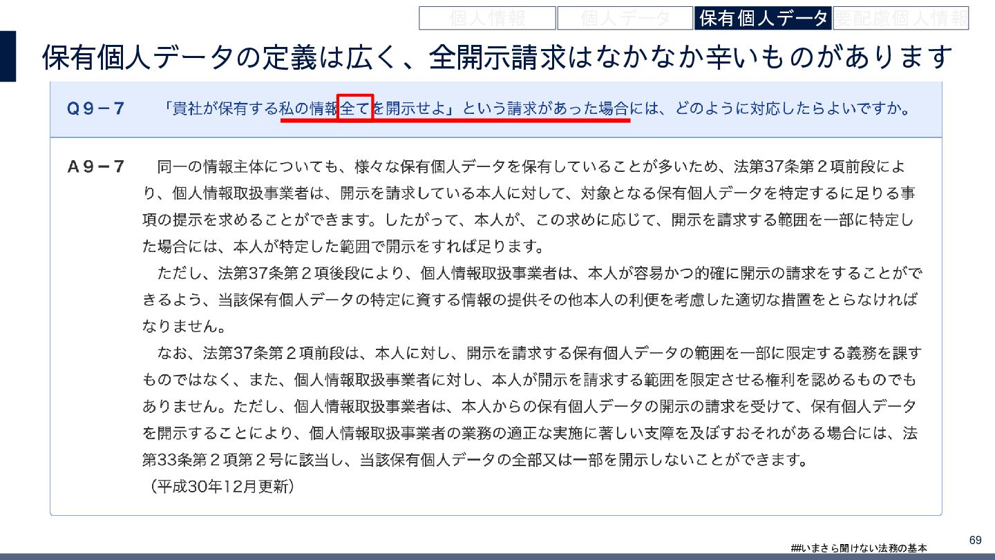 4/3(金)の12:00-13:30においてBUSINESS LAWYERS / 弁護士ドットコム株式会社様で実施した、 「いまさら聞けない法務の基本「個人情報保護法」」の登壇資料です。 https://www.businesslawyers.jp/seminars/553