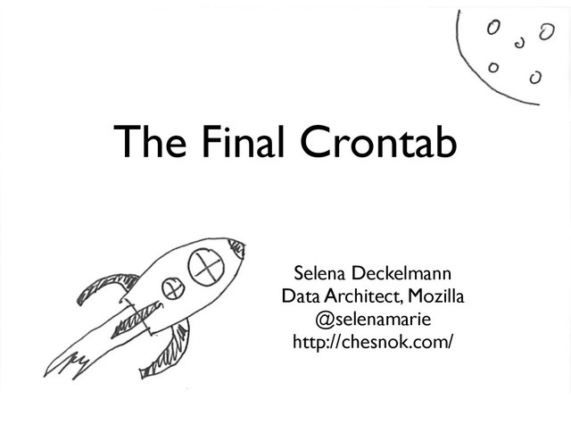 The Final Crontab Selena Deckelmann Data Architect, Mozilla @selenamarie http://chesnok.com/
