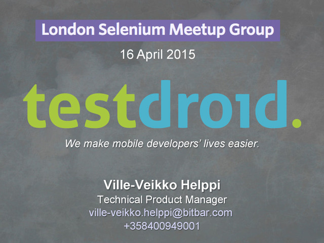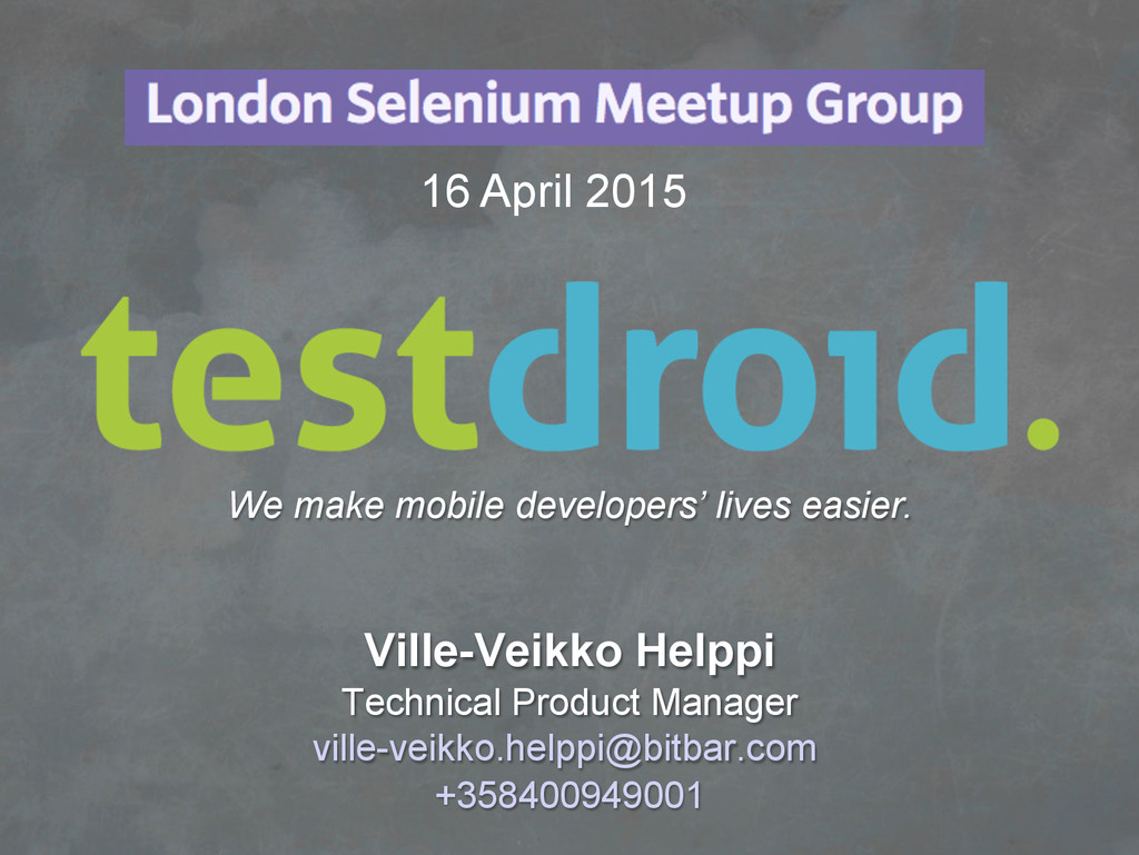 Devices at Testdroid Cloud for ONE Week Appium Access and Sample Source Code from LDNSE Presentation A Chance to Win a 30-day FREE UNLIMITED Access to Testdroid Cloud Devices