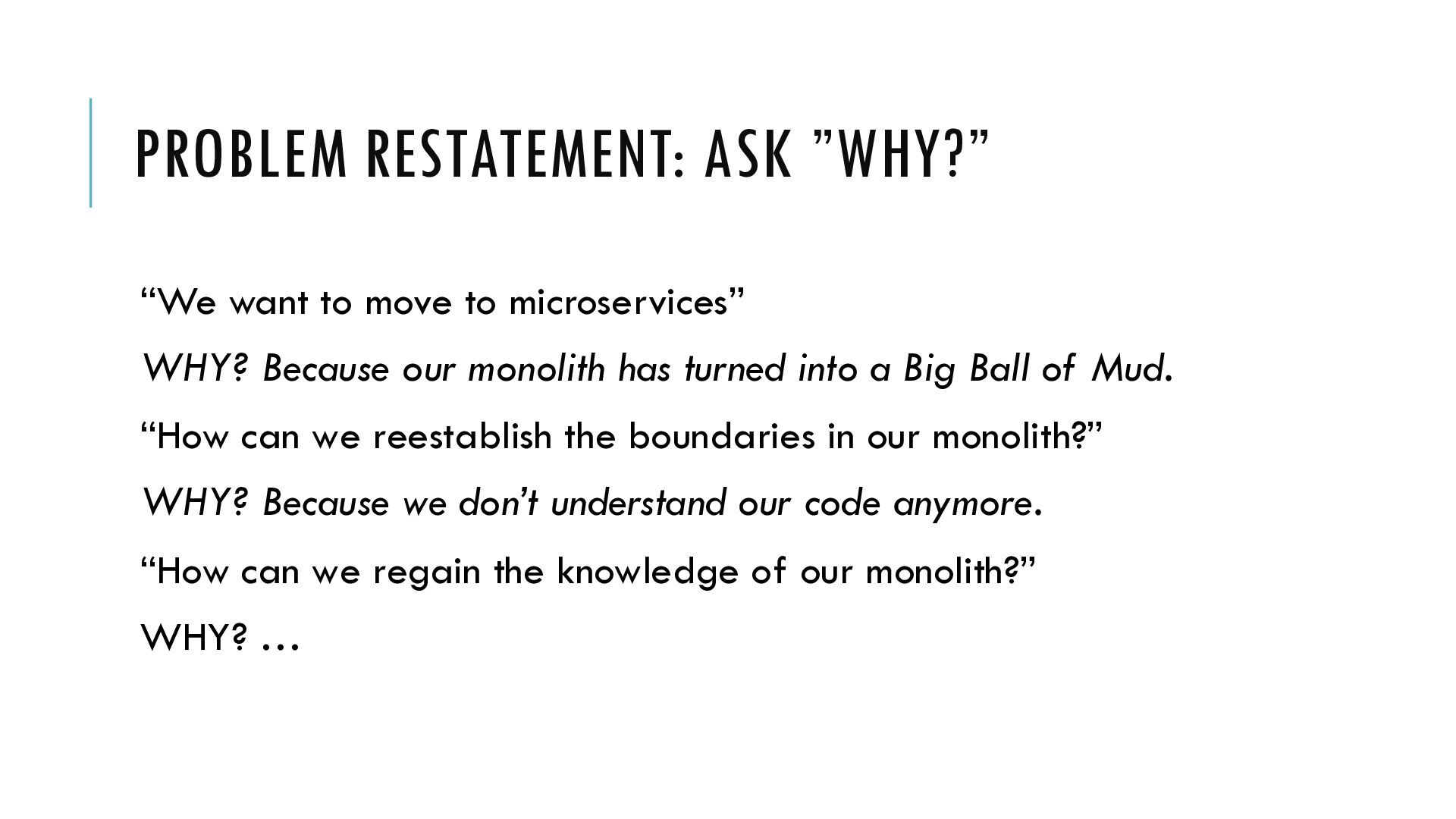 This talk is a call to slow down to speed up your decision-making. Whether you're an engineer, architect, or tech lead, this session will challenge you to pause before reaching for solutions and instead ask: *what problem am I really trying to solve?*