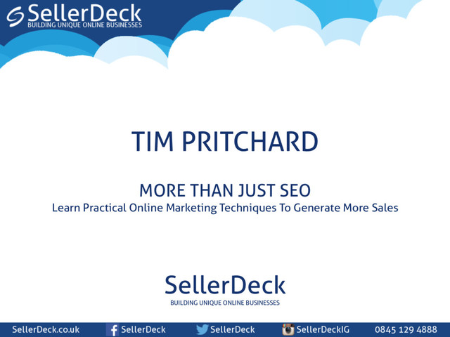 track the conversions KEYWORDS 5000 Impressions per day 5000 people see your naturally ranked keyword. 900 -‐ 1800 visits Of those impressions, 900 -‐ 1800 people click through to your site. (18 – 36% CTR) £3 per visit Each of those visits is worth £3 £2700 -‐ £5400
