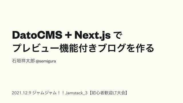 DatoCMS + Next.js Ͱ ϓϨϏϡʔػೳ͖ϒϩάΛ࡞Δ ੴ֞ଠ @semigura 2021.12.9 δϟϜδϟϜʂʂJamstack_3ʲॳ৺ऀܴLTେձʳ