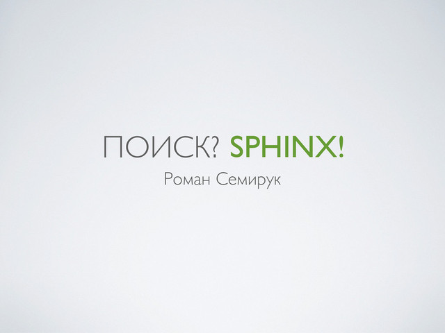 Sphinx считается одним из самых быстрых и гибких поисковых движков на рынке, но не является "коробочным" решением, чем отпугивает многих разработчиков. Я расскажу как быстро поднять полнотекстовый поиск для своего проекта на базе Sphinx, почему он крут и какие существуют интеграционные решения для Python.