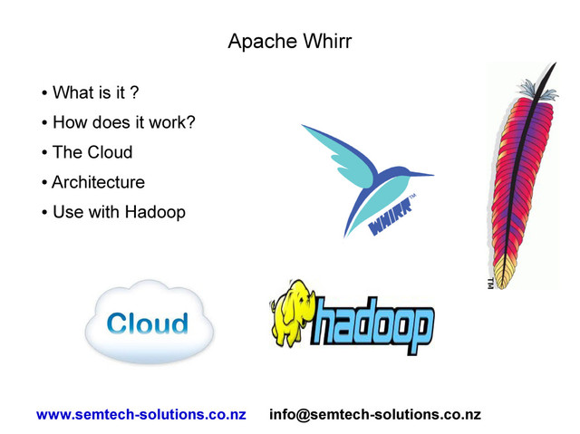 independence from Cloud vendor • Makes it easier to move vendors later • Save money by only using what you need • Expand the cluster as demand requires • Reduce the cluster when possible • Compress data as much as possible to reduce costs • Virtual cost < physical cost ( should be ) until – Data sizes in high Tbyte – low Pbyte range www.semtech-solutions.co.nz [email protected]