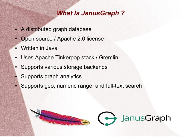 This presentation gives an overview of the JanusGraph DB project. It explains the JanusGraph database in terms of its architecture, storage backends, capabilities and community.