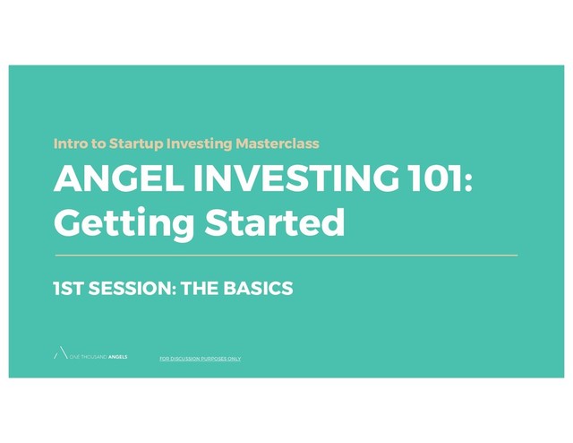 for 13 years. Executove Director of Golden Seeds, Managing Director at Dreamit Ventures, Founder of 1000 Angels and Reign Ventures. MBA from Columbia Business School and a BS from UCLA. Co-Founder & Managing Partner at 1000 Angels FOR DISCUSSION PURPOSES ONLY