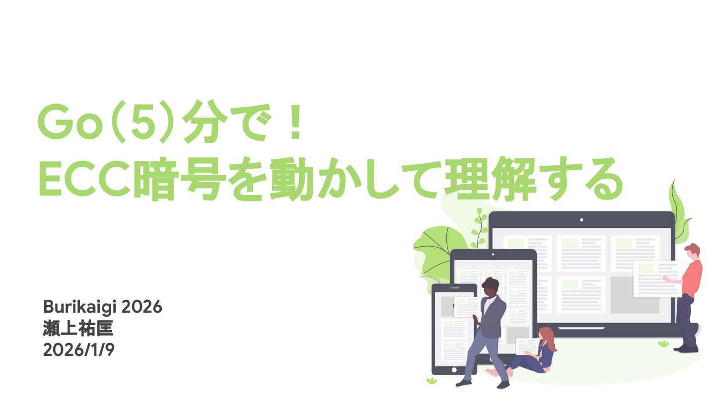Go(5)分で! ECC暗号を動かして理解する Burikaigi 2026 瀬上祐匡 2026/1/9