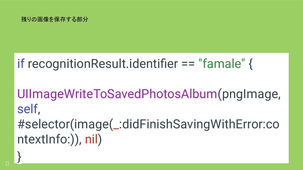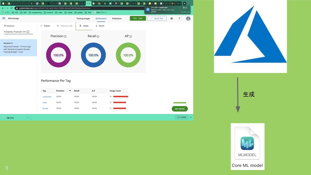 try? VNCoreMLModel(for: HumanModel().model) else { return VNClassificationObservation()} let request = VNCoreMLRequest(model: model) { (finishedReq, err) in guard let results = finishedReq.results as? [VNClassificationObservation] else { return } guard let firstObservation = results.first else { return } observation = firstObservation } do { try handler.perform([request]) } catch { print(error) } Visionによるリクエストと処理