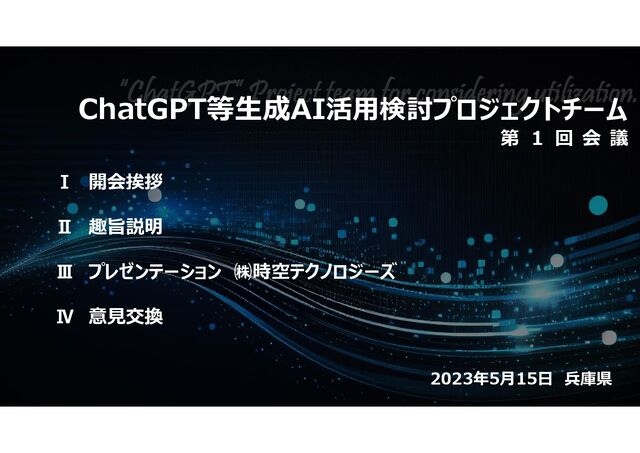 課題発見や仮説設定が重要 ➡ あくまでサポートツールということに留意 ➡ 誰に何をどう伝えるか、どう仕事を進めるか ▪ 正確な質問で精度の高い回答を得るスキルが必要 ➡ 回答が悪いのは、質問が悪い ➡ 繰り返し質問し、精度の高い質問の仕方を学ぶ 一般的な企画立案・資料作成プロセスから使い方を考える ブレーンストーミングで発想を広げる たたき台の作成、文章の添削を任せて時間効率を上げる 課題発見 仮説設定 情報収集 情報整理 ドラフト作成 推敲 関係者間調整 ChatGPTを利用 ➡ いつでも気軽に相談可能 ➡ 賛成・否定の立場を設定し、様々な意見が抽出可能 ➡ 組織の幹部、あるいは地域住民としての意見も ➡ 書き出すまでの時間を減少 ➡ 決裁を回す前に添削してもらい、ケアレスミスを減少 業務に利用する際の心構え 実施・運用 ・広範な一般知識の回答 ・文章作成や添削の支援 ・対話をしながら、様々なトピックに意見 ChatGPTが得意とすること ChatGPT等生成AI活用検討プロジェクトチーム 第1回会議