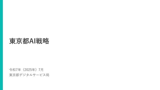 ・・・・・・・・・・・・11 2. 都政におけるAI利活用 • AI利活用に当たっての基本方針 ・・・・・・・・・・・・14 • AI利活用を図っていくべき業務領域 ・・・・・・・・・・・・15 • 各業務領域におけるAI利活用の分類 ・・・・・・・・・・・・16 • AI利活用に当たって留意すべき事項 ・・・・・・・・・・・・19 • 基本方針を踏まえたAI利活用の推進 ・・・・・・・・・・・・20 3. 多様な主体とのAI利活用促進 • 国際競争力の向上及びAIフレンドリーな社会の醸成 ・・・・・・・・・・・・25 • 産業の成長とイノベーションを牽引する取組の展開 ・・・・・・・・・・・・26 • 社会全体におけるAIの活用促進と人材育成の推進 ・・・・・・・・・・・・28 4. 東京都の推進体制と主な取組 • 都政におけるAI利活用推進に向けた体制と主な取組 ・・・・・・・・・・・・31 おわりに ・・・・・・・・・・・・37 目次