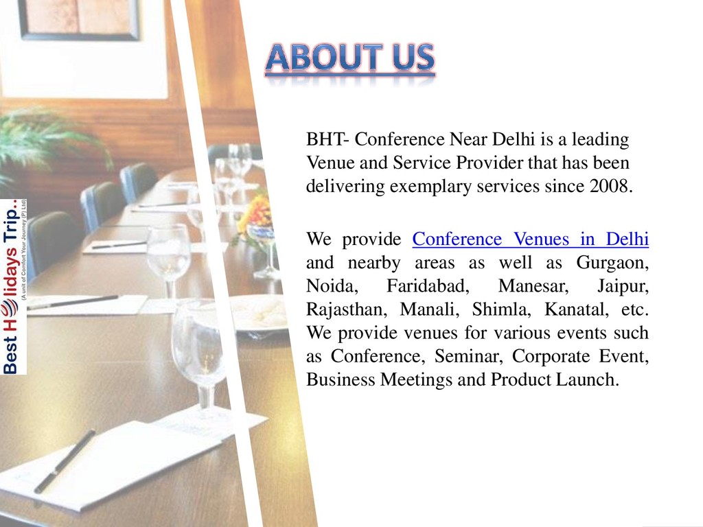 Conference Venues near Delhi provide fully equipped well-furnished conference venues, halls in Delhi/NCR with all sorts of technical assistance. Besides business meetings and conference, events, parties. We also offer a range of corporate party venues, destinations venues, corporate team outing with full facility in Delhi/NCR and nearby areas. Feel Free and get in touch with us for more information. We are pleased to provide you our best services with the good long relationship.