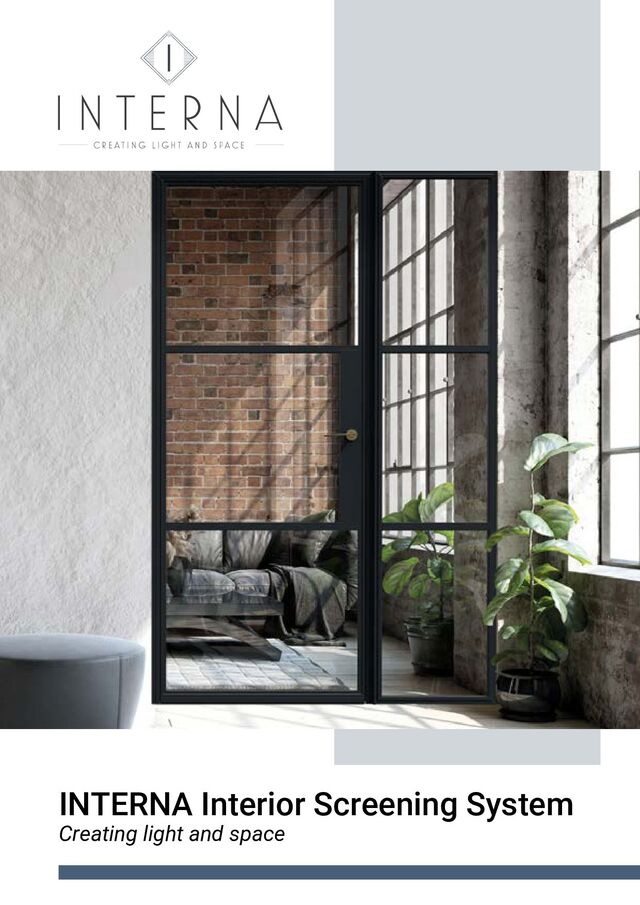 slim lines to create a light and airy interior environment. The Interna Screen System can be designed to divide or delineate both residential and commercial spaces, while at the same time providing an effective acoustic barrier. With a choice of hinged single and double doors, as well as pivot and sliding options to accompany the stylish fixed glazed screen, this flexible and versatile system provides almost limitless design options. Options also extend to include visible hinges, concealed pivot or sliding mechanisms, enabling the system to be completely tailored to meet virtually any design style. The Interna Screen System requires minimal maintenance, with the high quality design providing many years of assured, reliable and robust performance. Designed to divide or delineate both residential and commercial spaces, while at the same time providing An Appreciation an effective acoustic barrier. SINGLE DOOR DOUBLE DOOR FIXED SCREEN PIVOT DOOR SLIDING DOUBLE DOOR SLIDING DOOR OFFSET SINGLE SLIDING DOOR OFFSET DOUBLE SLIDING DOOR DESIGN CONFIGURATIONS 01252 336 614 | Email