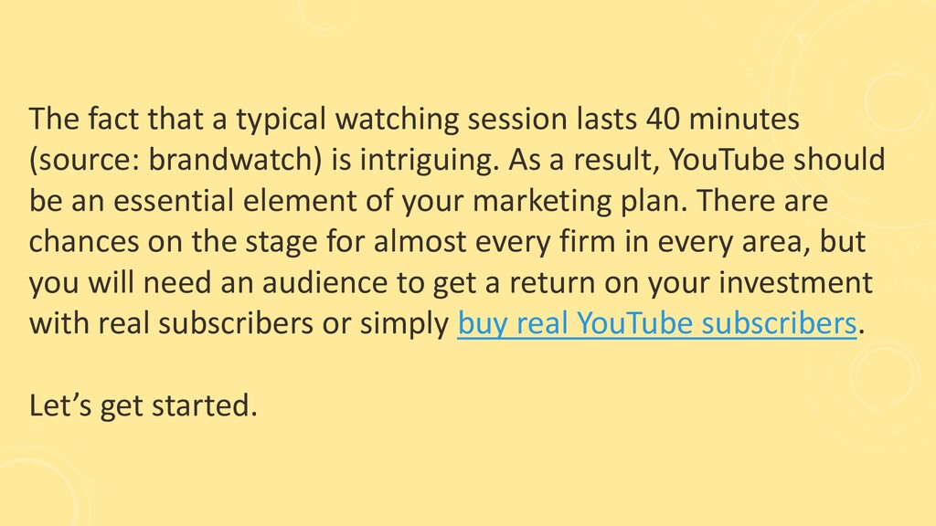 (source: brandwatch) is intriguing. As a result, YouTube should be an essential element of your marketing plan. There are chances on the stage for almost every firm in every area, but you will need an audience to get a return on your investment with real subscribers or simply buy real YouTube subscribers. Let’s get started.