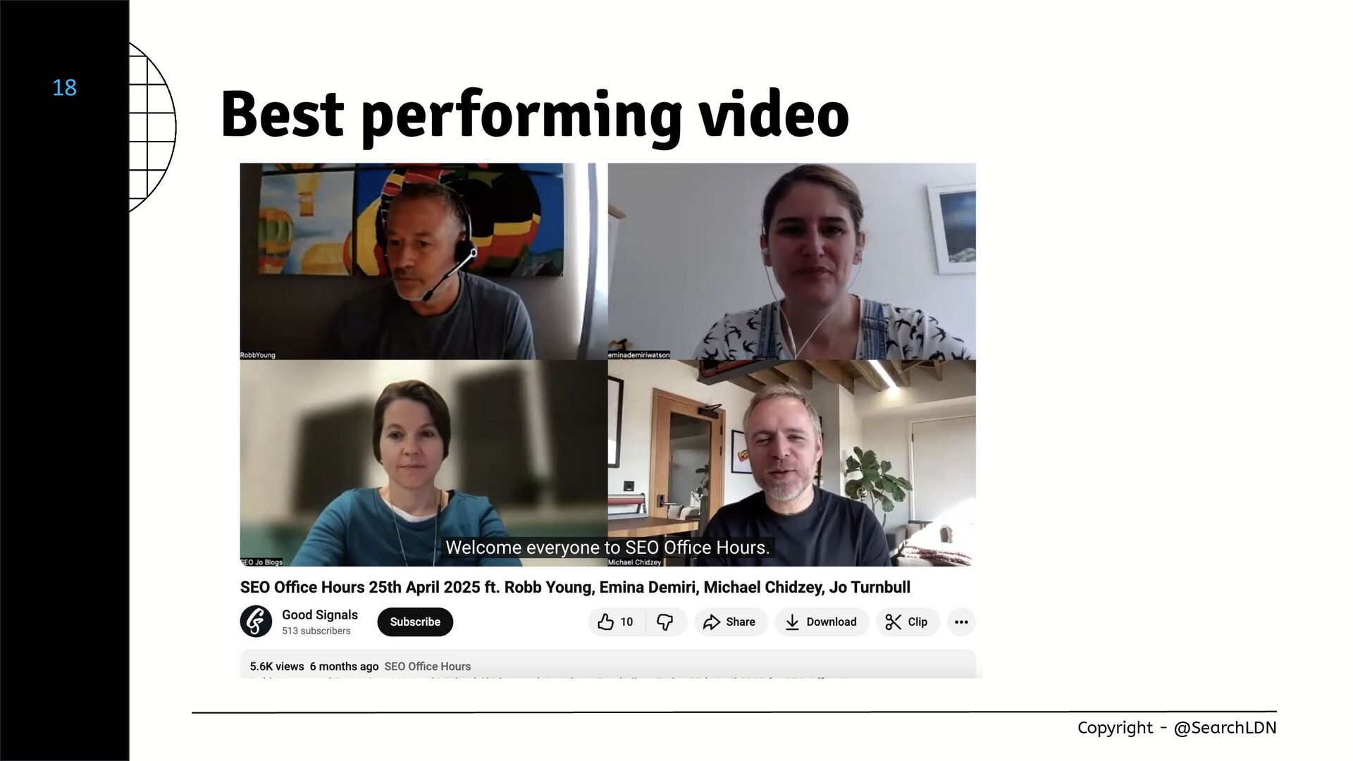 Jo will share the insights from SEO Office Hours show and how you can also build a YouTube show that has global reach on a limited budget. She will share how, in a competitive industry, you can also create a platform that generates traction, visibility and also leads for your company and your own personal brand.