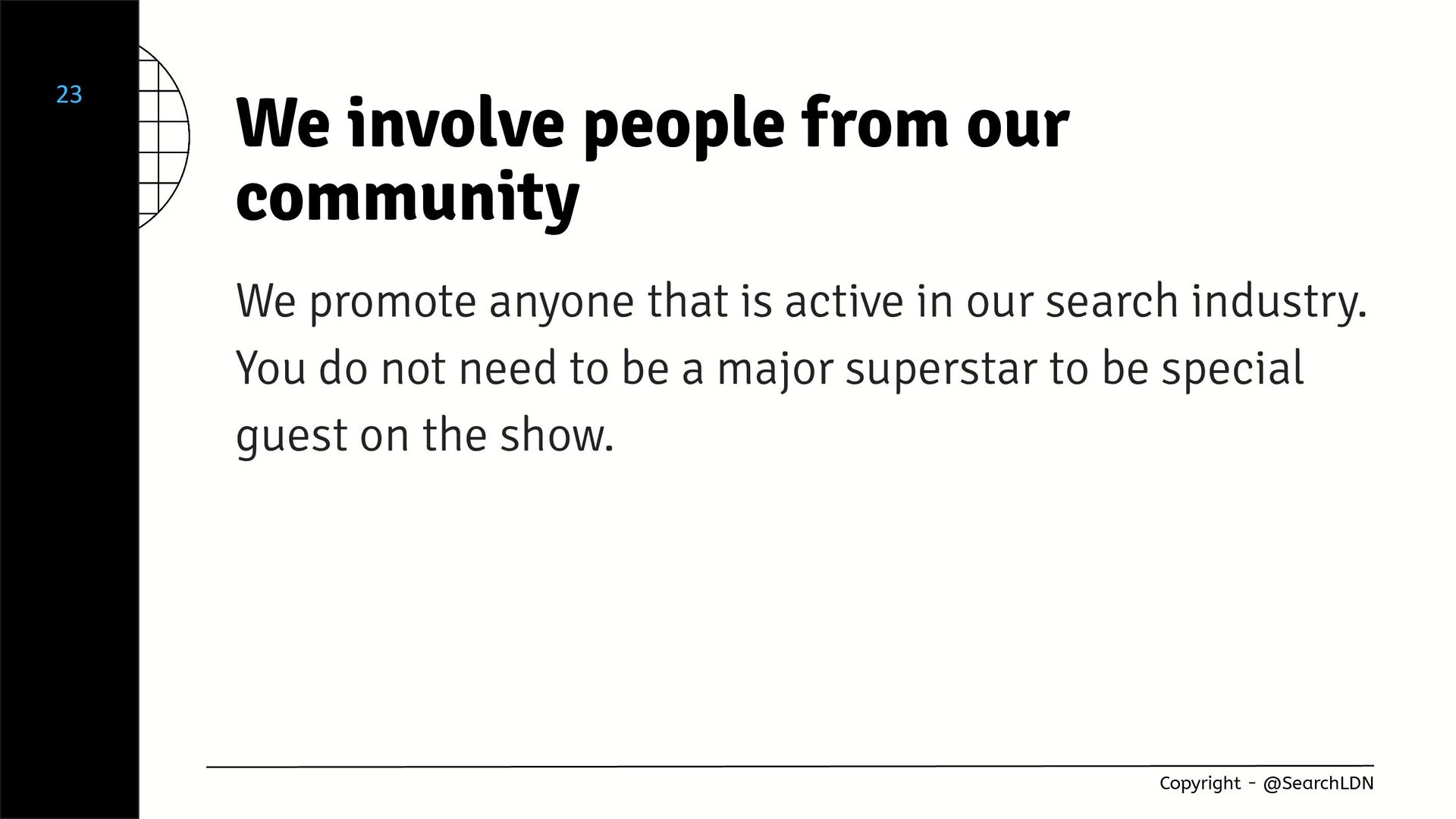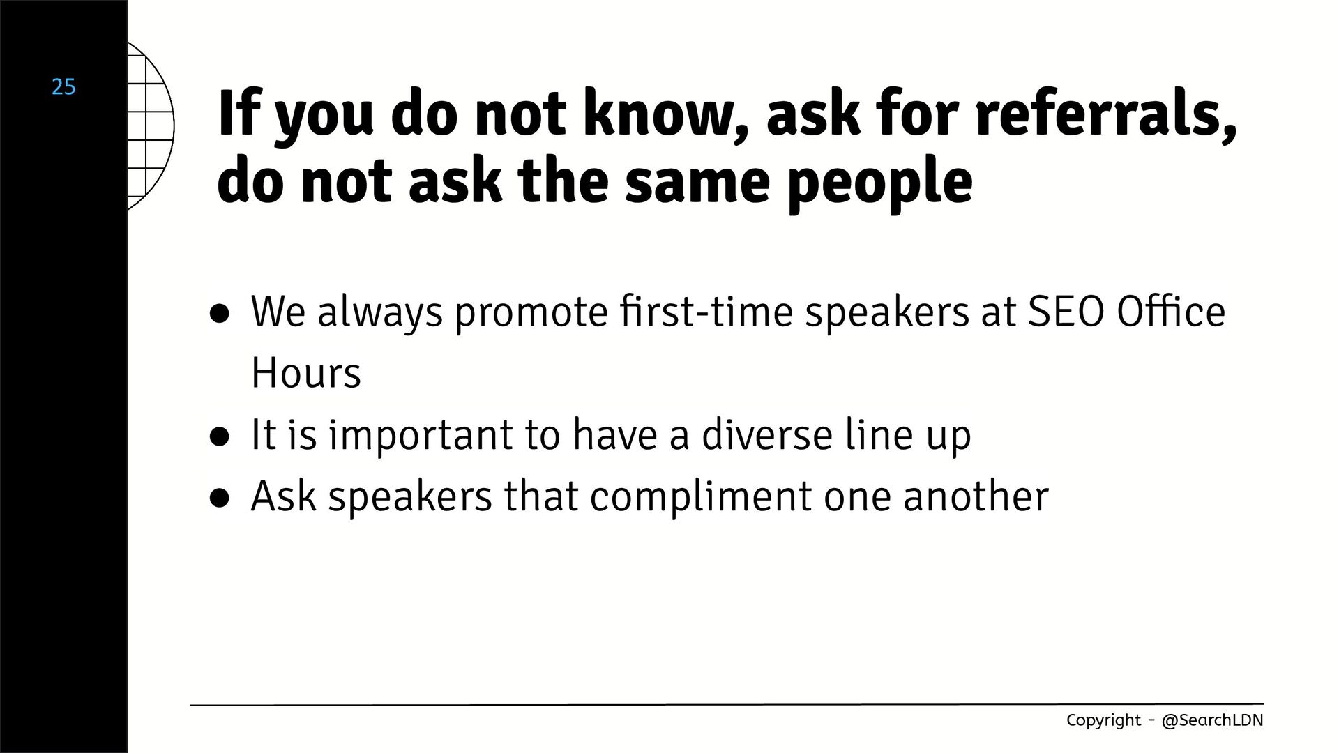 - How to promote and have a diverse range of speakers presenting a variety of topics