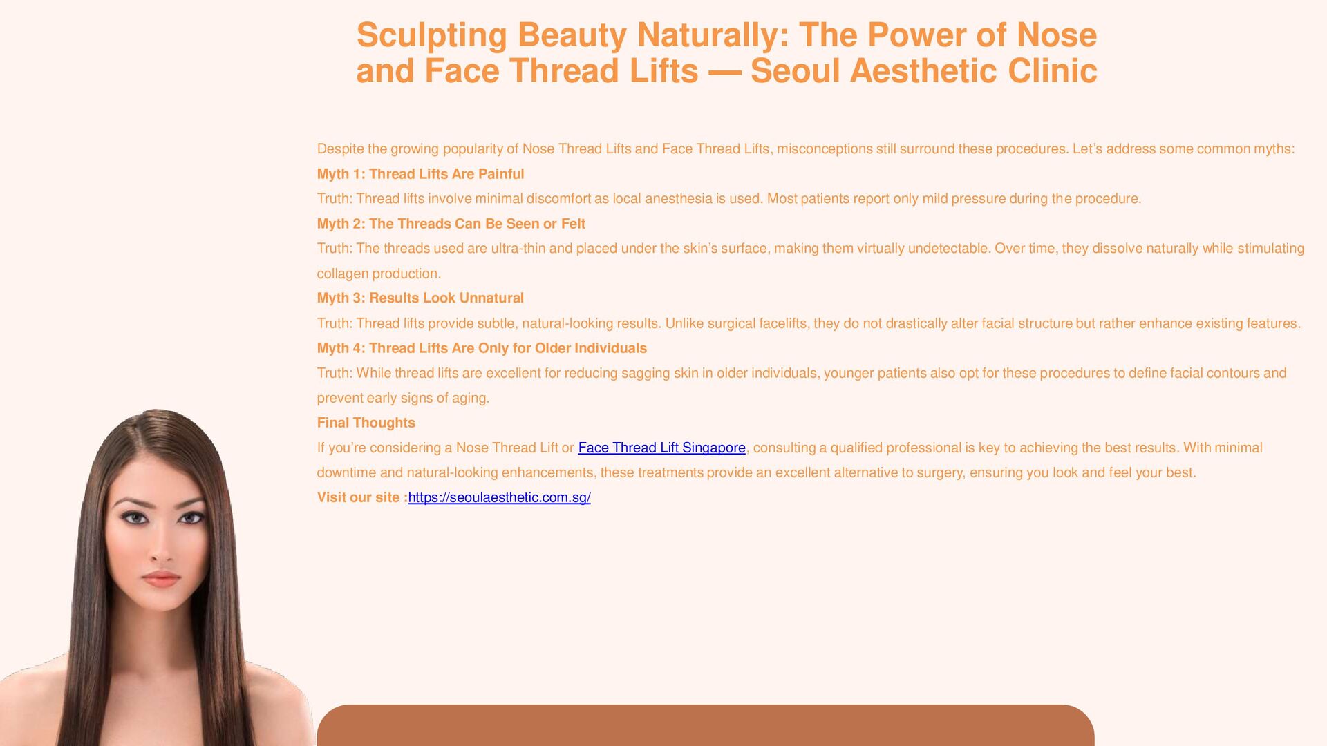 Despite the growing popularity of Nose Thread Lifts and Face Thread Lifts, misconceptions still surround these procedures. Let’s address some common myths: