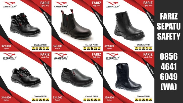 Fariz Sepatu Safety merupakan Distributor Sepatu Safety Merk Cheetah dan Jogger Terbaik di Indonesia. Produk yang dipasarkan dijamin 100% Original dan selalu baru bukan barang expired yang mudah rusak. Ditambah lagi ada diskon dan potongan harga langsung untuk pembelian grosir/banyak. Tunggu apalagi belanja sepatu safety disini aja!