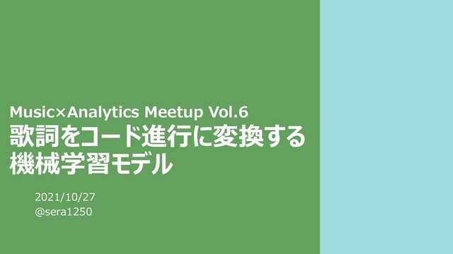 歌詞をコード進行に変換する 機械学習モデル 2021/10/27 @sera1250 Music×Analytics Meetup Vol.6