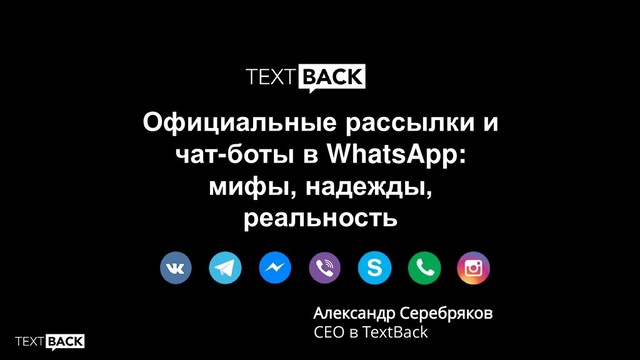 Презентация https://textback.ru на СПИК 2019: Официальные рассылки и чат-боты в WhatsApp: мифы, надежды, реальность