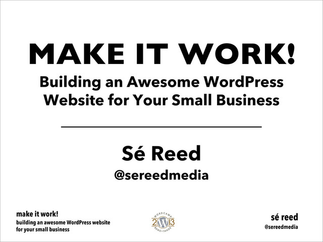 small business sé reed @sereedmedia QuickInstall (aka “one-click”, 3rd party apps, etc.) 1. Do not use Auto-Upgrade 2. Do not use “admin” 3. Use strong passwords