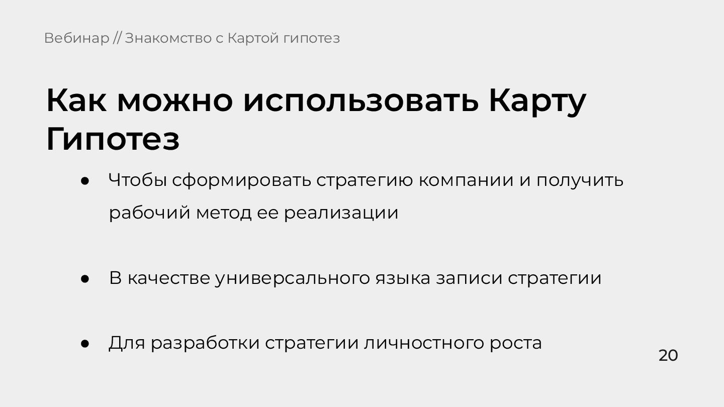 Карты Гипотез 3. Почему Карта Гипотез - это универсальный язык записи стратегии 4. Как можно использовать Карту Гипотез 4 Вебинар // Знакомство с Картой гипотез