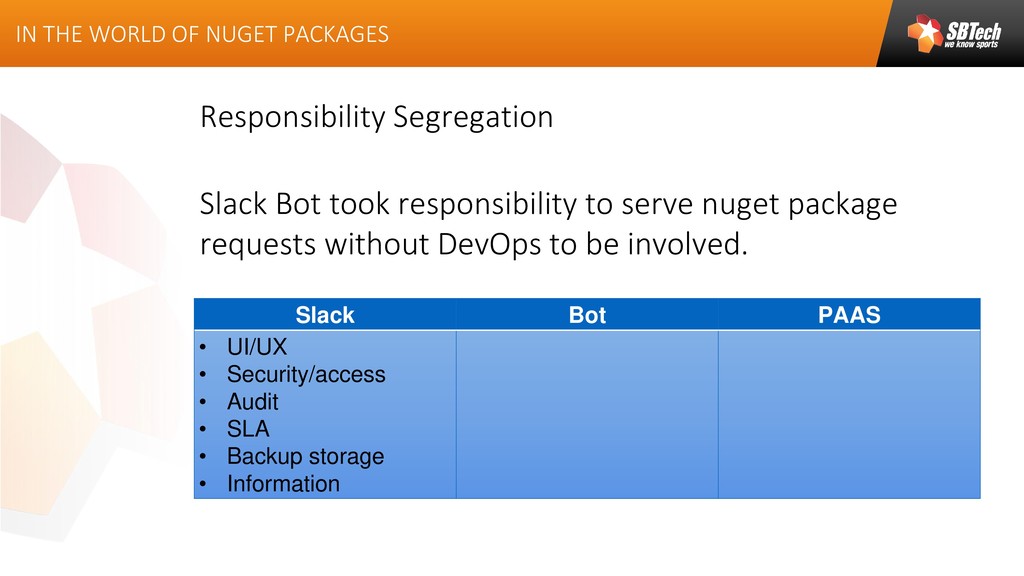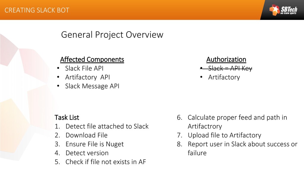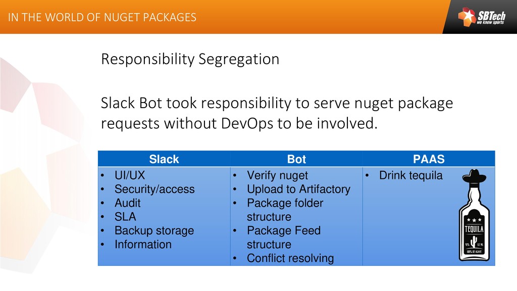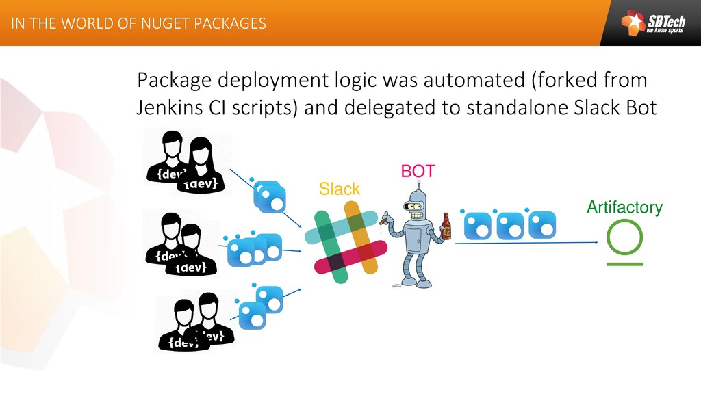 This article describes how to build and maintain slack bot, which will help to publish Nuget packages, custom build on developers side, into the Artifactory.