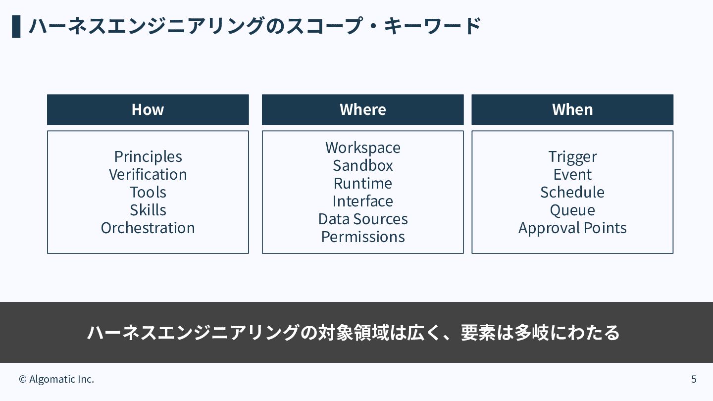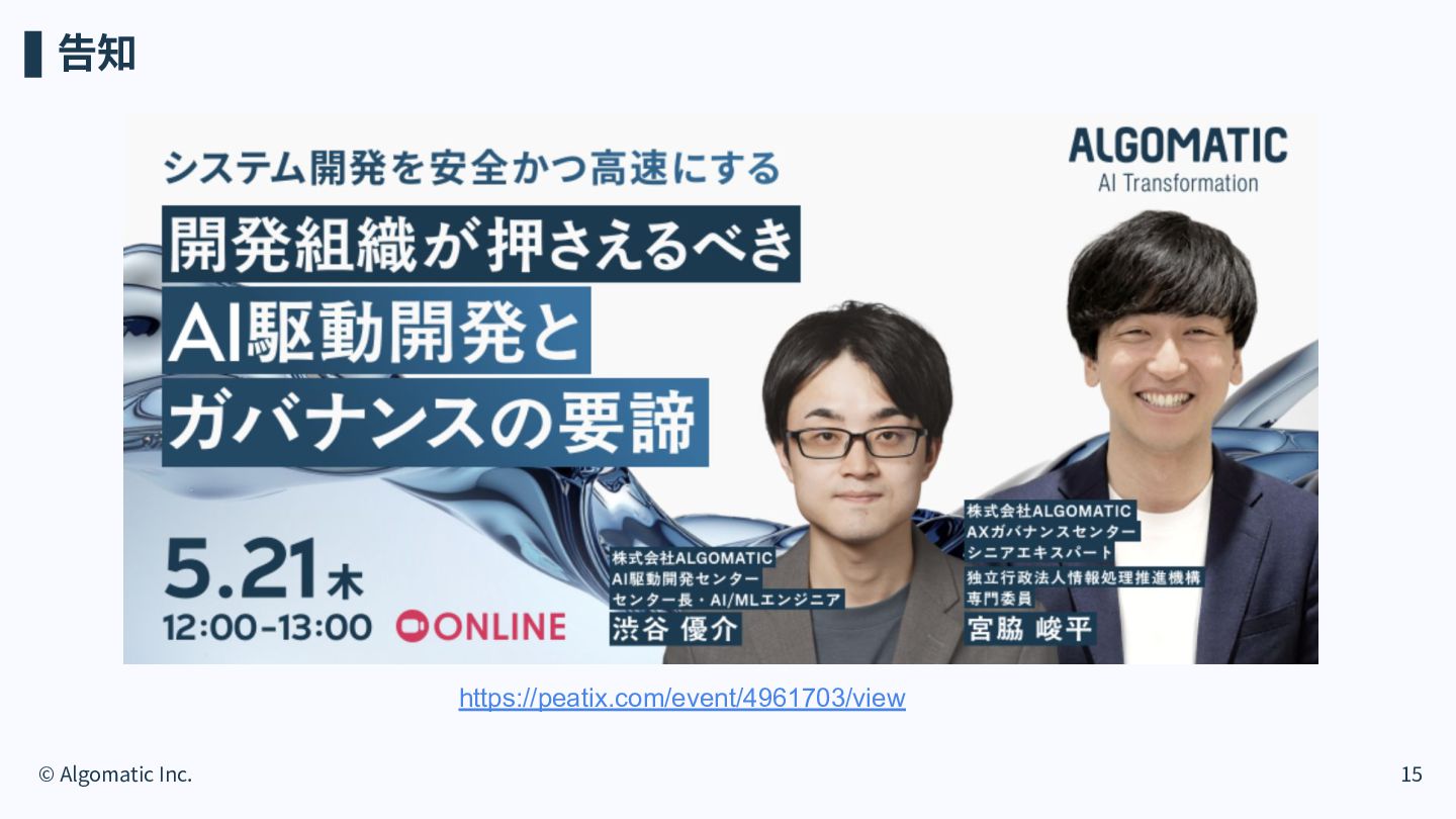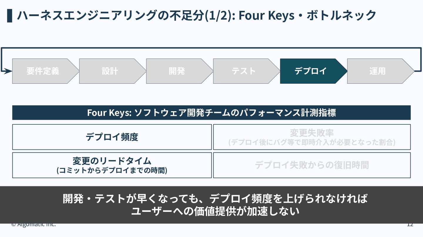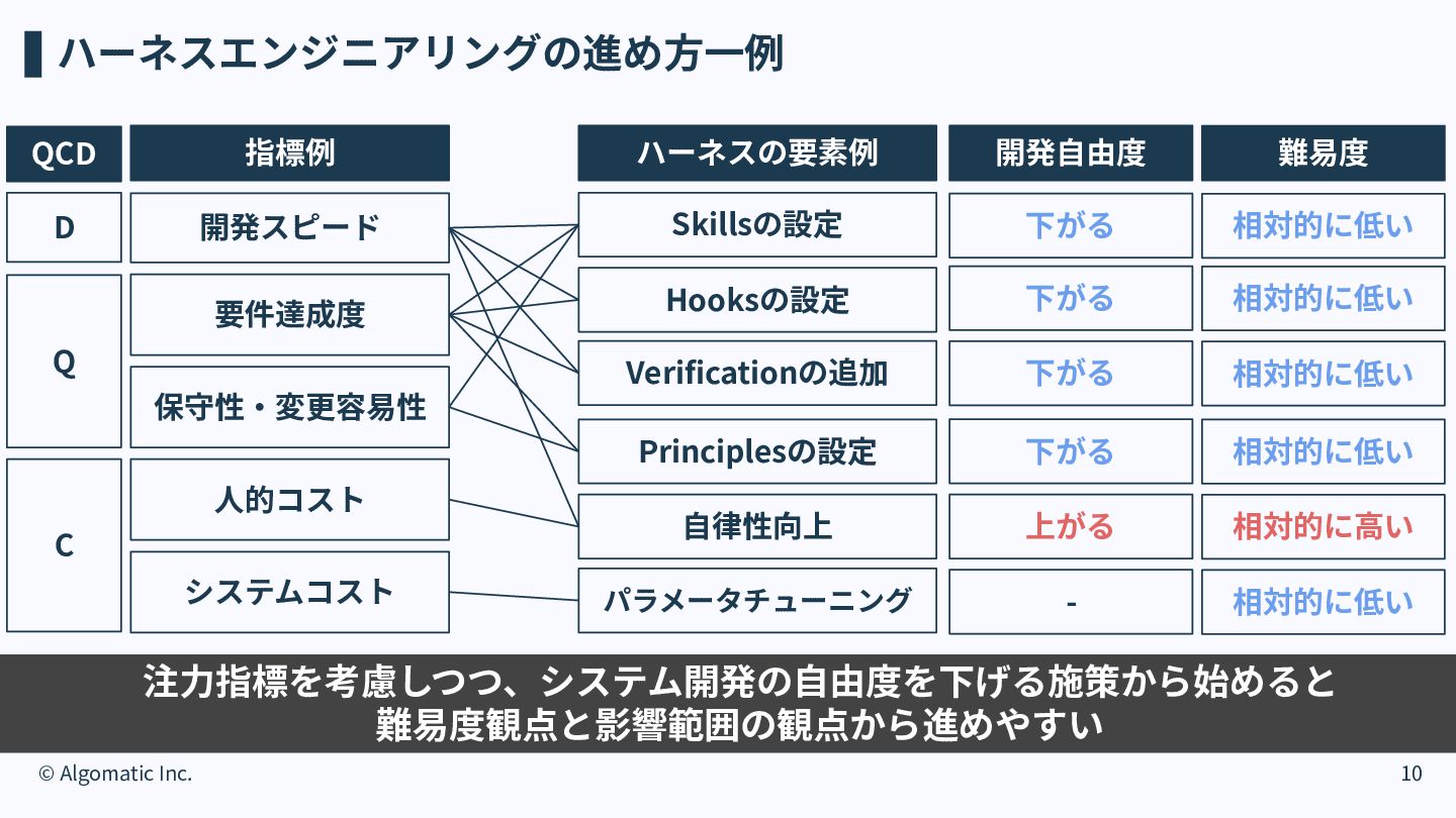 設計 開発 テスト 要件定義 設計 開発 テスト 投機的な開発 テスト ハーネス 並列開発によるdiscovery業務⾼度化 デザインシステム ⼈の介⼊を模した Agent Loop機構による開発を⾃律化 Agent Loop A A 概念図 解説 D D B プロダクトPrinciple B C C Remote Test Runtime D ユーザー体験原則を含むデザインシステム ‧事業KPI含むプロダクトPrincipleを⽤い た確度の⾼い開発 B C テスト前倒しによる観点潰し込み。 クラウド環境でのテスト⾃動化によりテス ト負荷軽減。テスト動画をLinearへ添付。 D Quality Assurance E 弊社独⾃の品質管理基準による 開発機能種別に応じたレビュー E