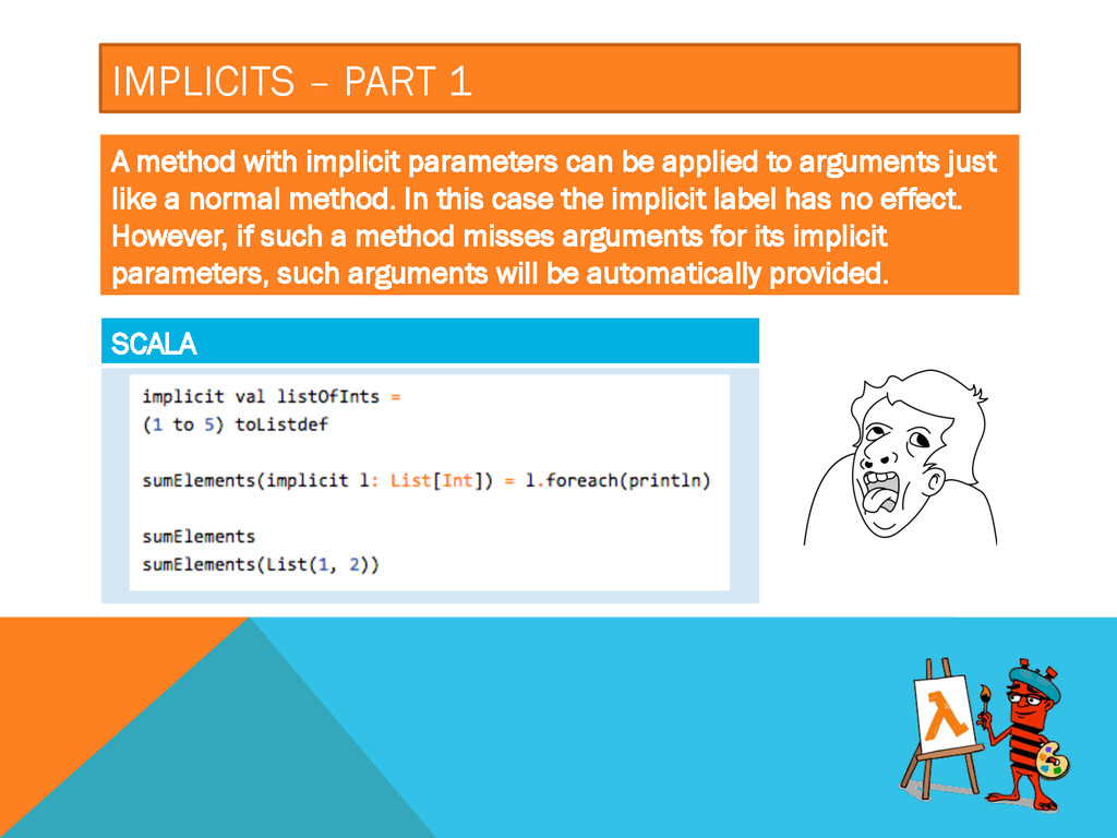 can be applied to arguments just like a normal method. In this case the implicit label has no effect. However, if such a method misses arguments for its implicit parameters, such arguments will be automatically provided.