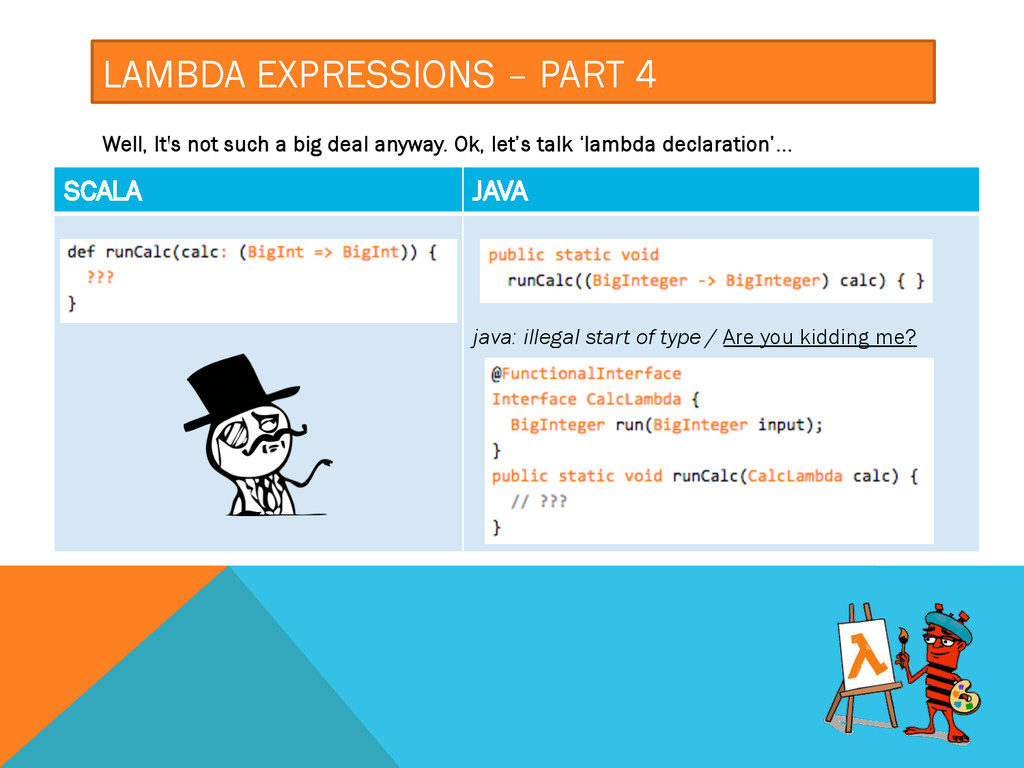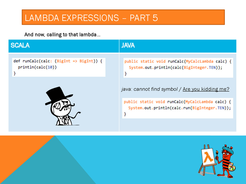 difference… wait! SCALA Lambda expressions in Java are syntactic sugar over anonymous classes that have access to the final objects of a context only. But in Scala, they are full-on closures that have the full access to the context.