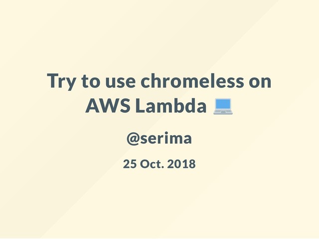= new Chromeless({ remote: { endpointUrl: 'https://xxxxx.execute-api.ap-northeast-1.ama apiKey: 'xxxxxxxxxxxx' }, }) const screenshot = await chromeless .setUserAgent('Mozilla/5.0 (iPhone; CPU iPhone OS 7_0 like M .setViewport({width: 640, height: 1136, scale: 1}) .goto(url) .screenshot() console.log(url) console.log(screenshot) // prints S3 url await chromeless.end() } run('https://www.yahoo.co.jp').catch(console.error.bind(console run('https://www.facebook.com').catch(console.error.bind(console