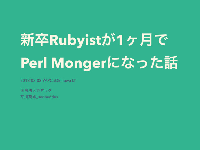 ৽ଔRubyist͕1ϲ݄Ͱ Perl Mongerʹͳͬͨ 2018-03-03 YAPC::Okinawa LT ໘ന๏ਓΧϠοΫ ۔Ѯ @_serinuntius