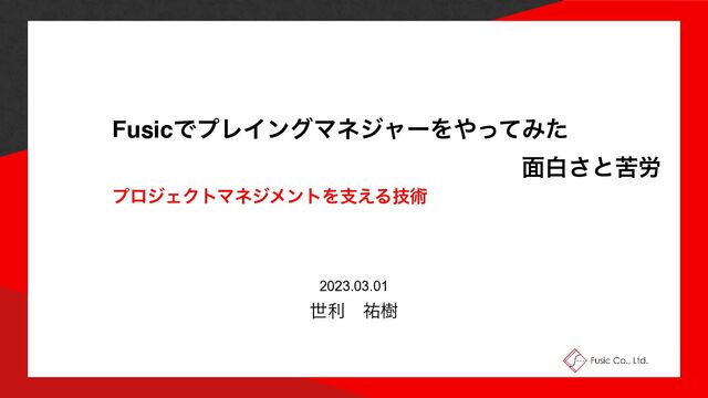 FusicͰϓϨΠϯάϚωδϟʔΛͬͯΈͨ ໘ന͞ͱۤ࿑ ϓϩδΣΫτϚωδϝϯτΛࢧ͑Δٕज़ 2023.03.01 ੈརɹ༞थ 1