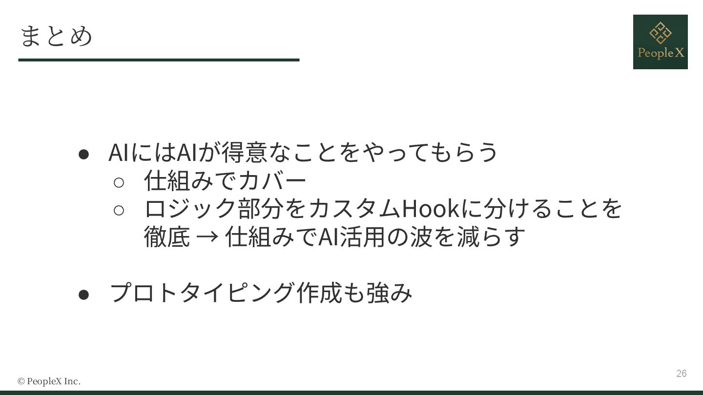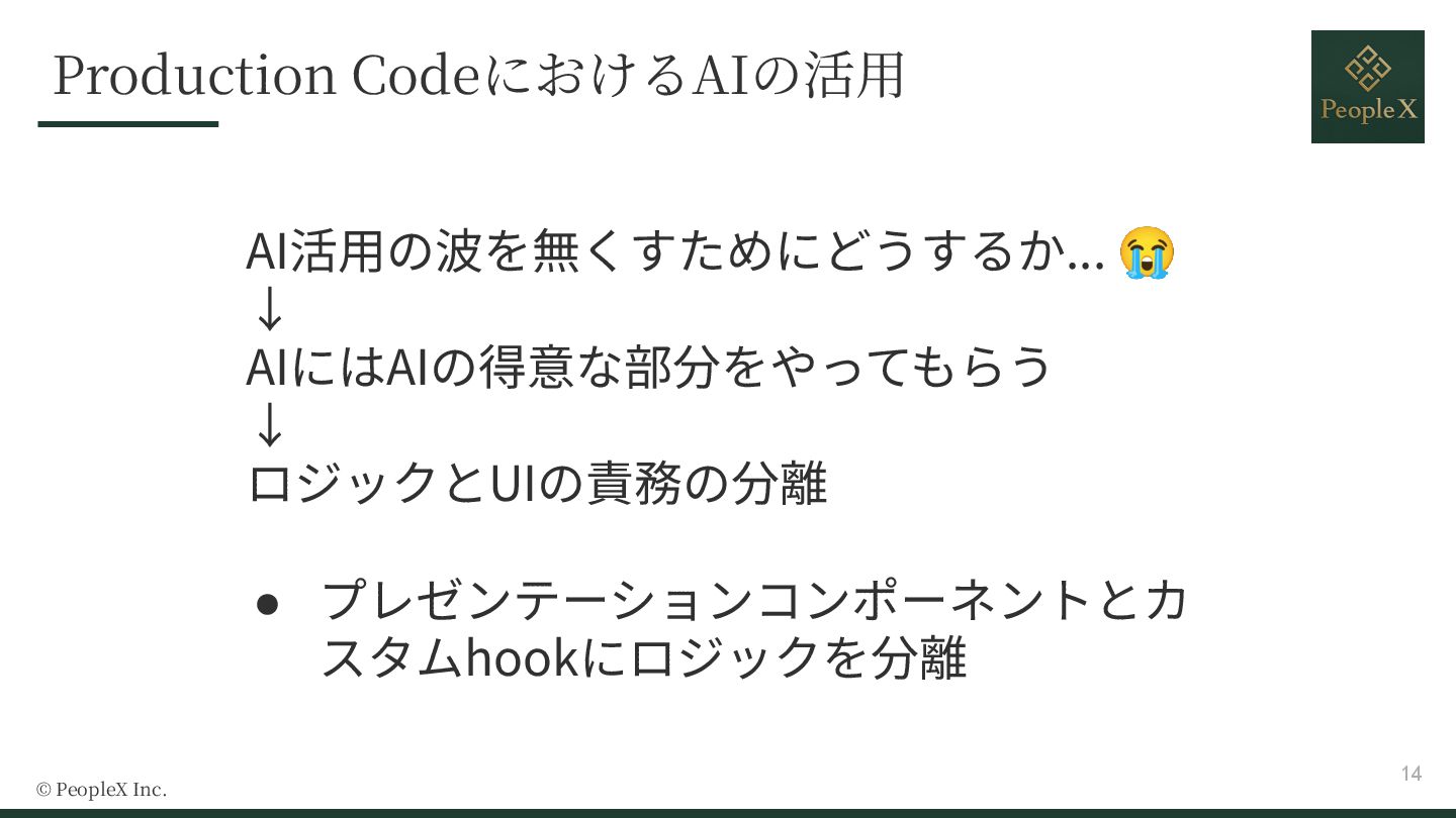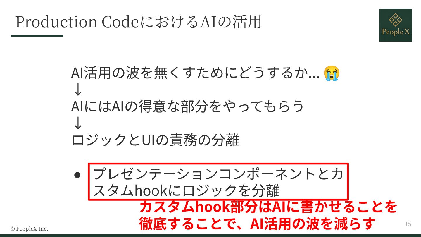 - UIとロジックの責務分離によるAI活用の安定化