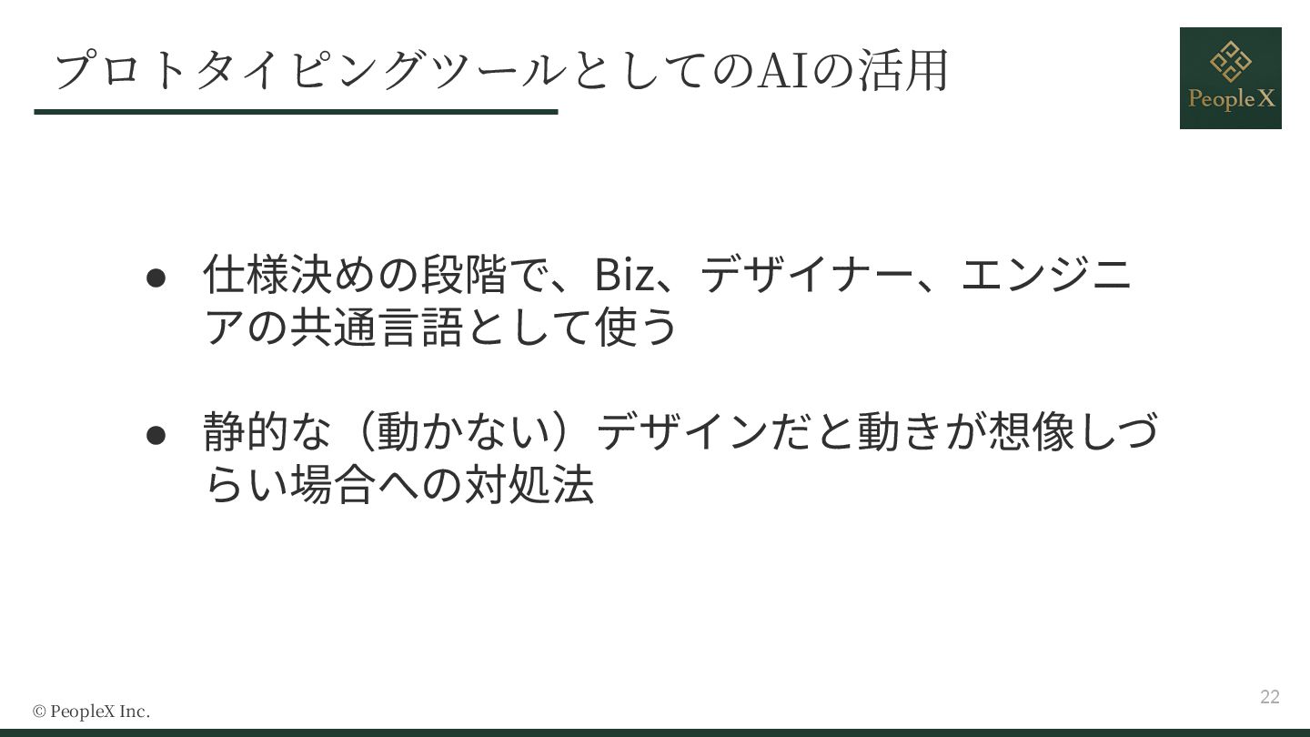- Biz/デザイナー/エンジニアの共通言語としてのAI
