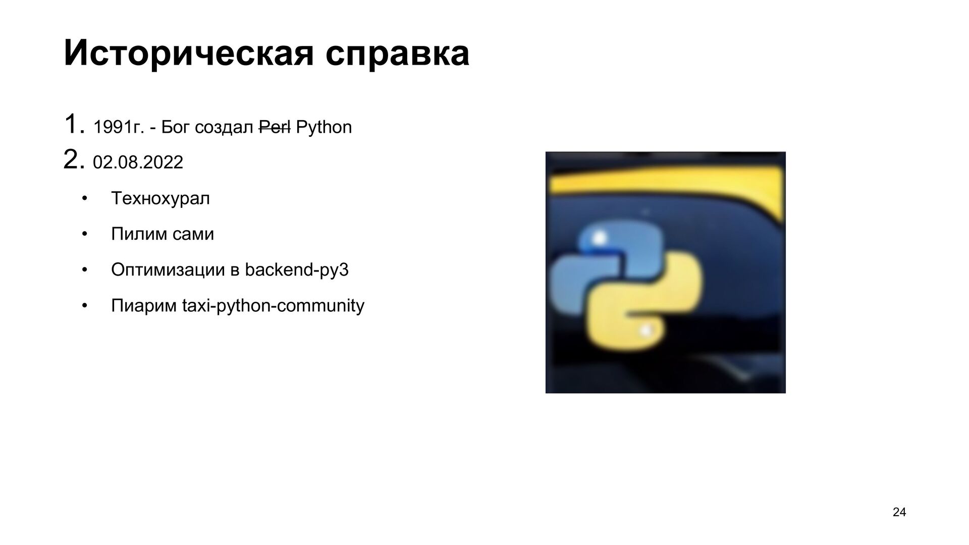 пишу на Python • ранее писал на C++ 6 лет • В Яндекс Еде с 2022 года • Перекладываю JSON'ы (а кто не перекладывает?) • Павел Соломатин @hyberlet • Поднимаю Python в Райдтехе с колен • Люблю причинять добро и наносить пользу • Перекладываю ya.make 32